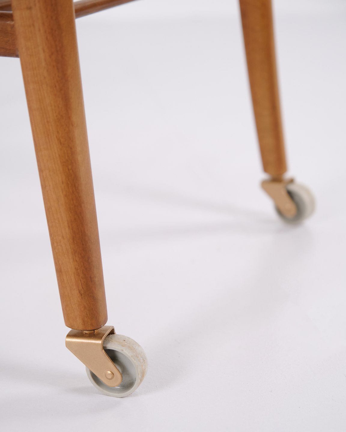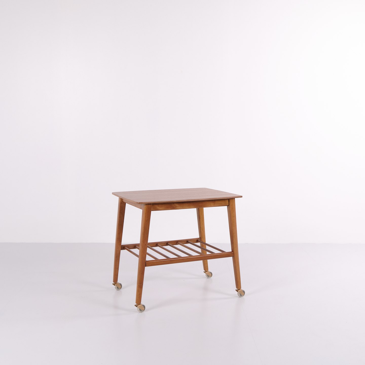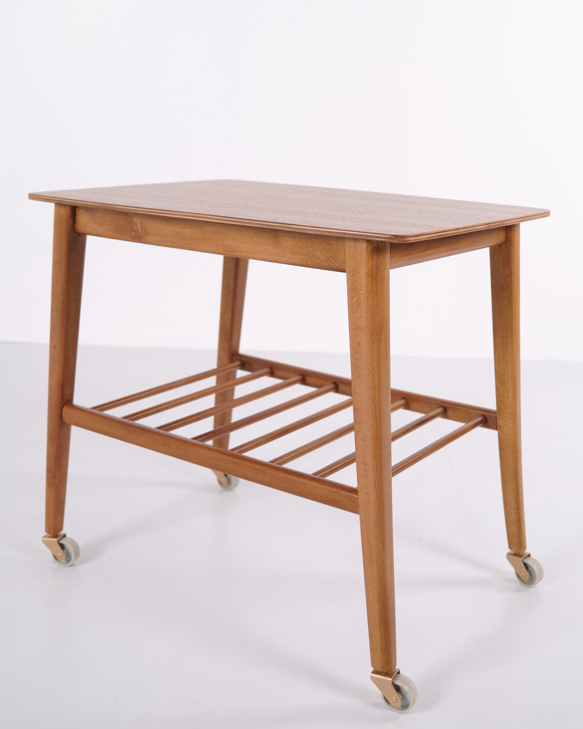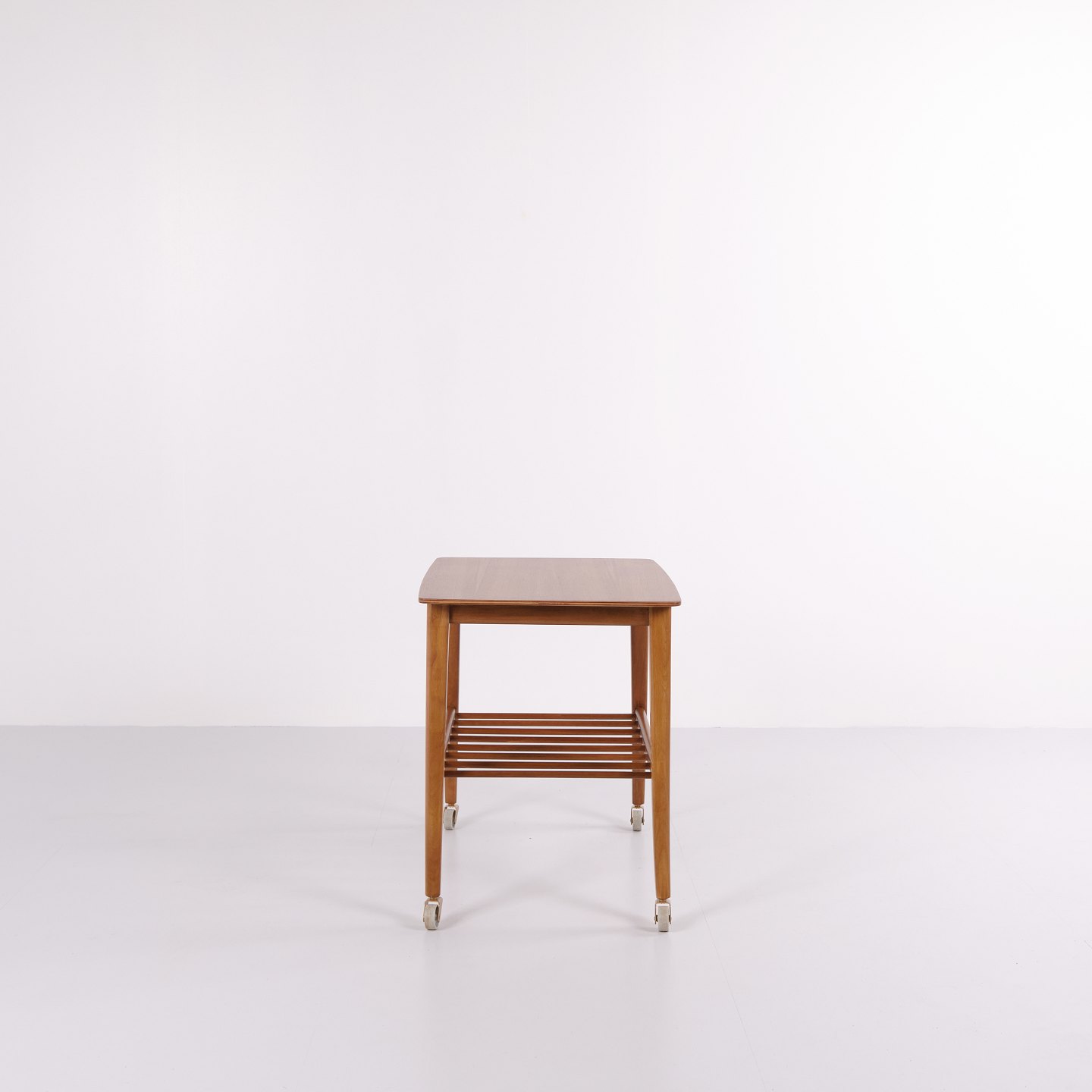 Sidebord fra 1960’erne i teaktræ med hylde og hjul. Klassisk dansk design.— Oprindelse: Danmark