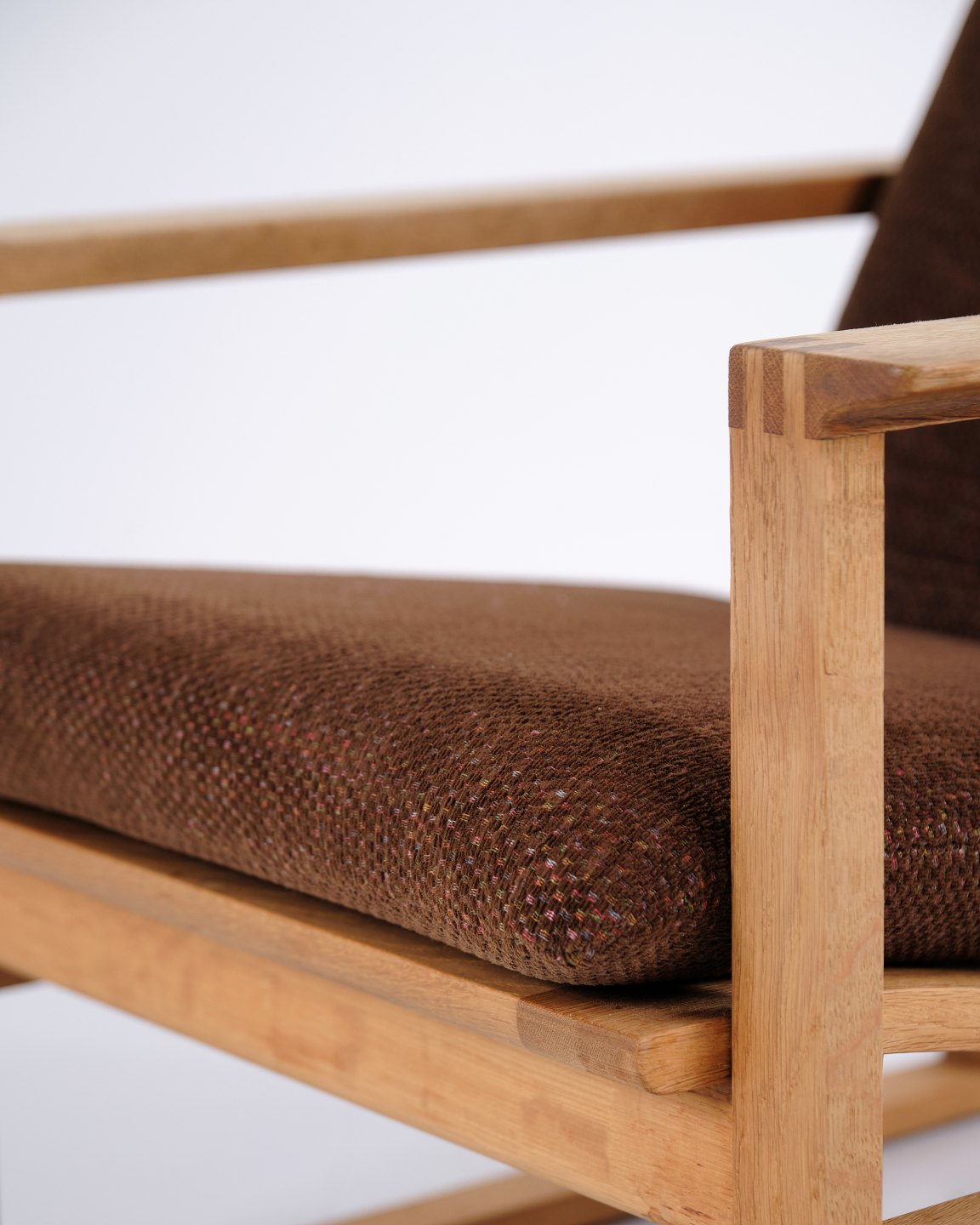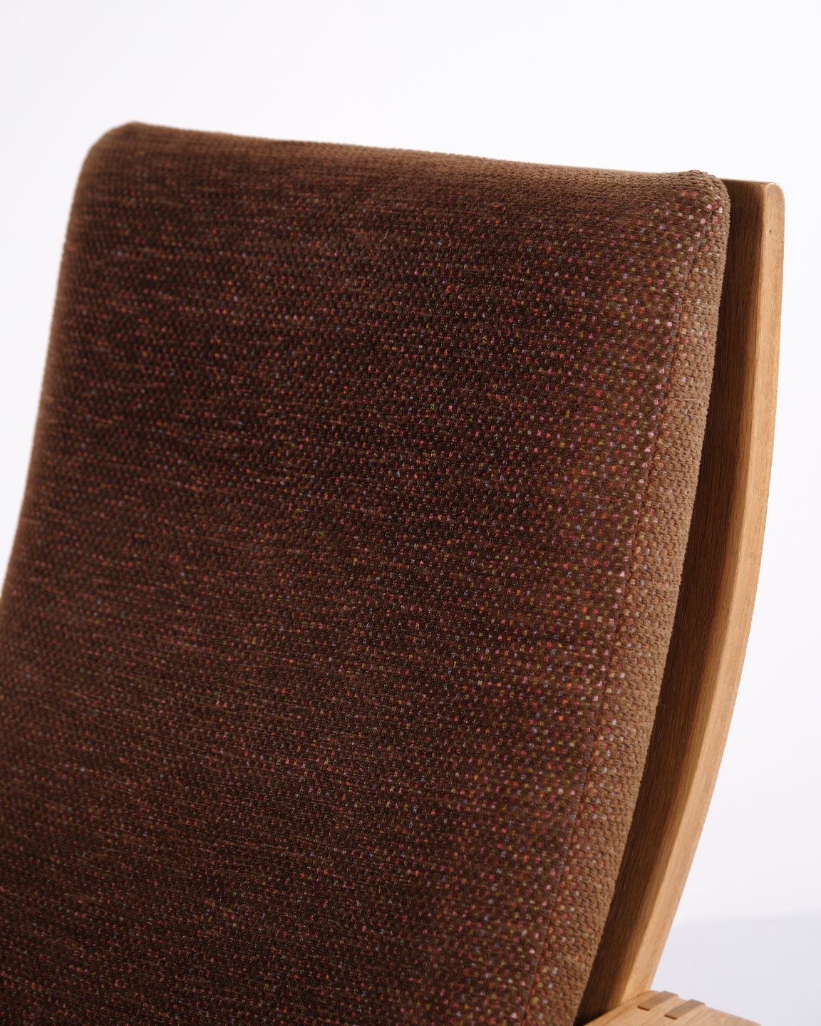 Børge Mogensen slædestol BM2254 fra Fredericia Stolefabrik. Egetræ med brune hynder.— Oprindelse: Danmark