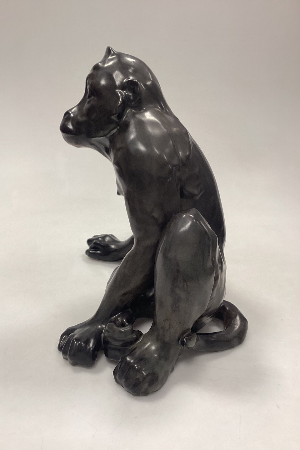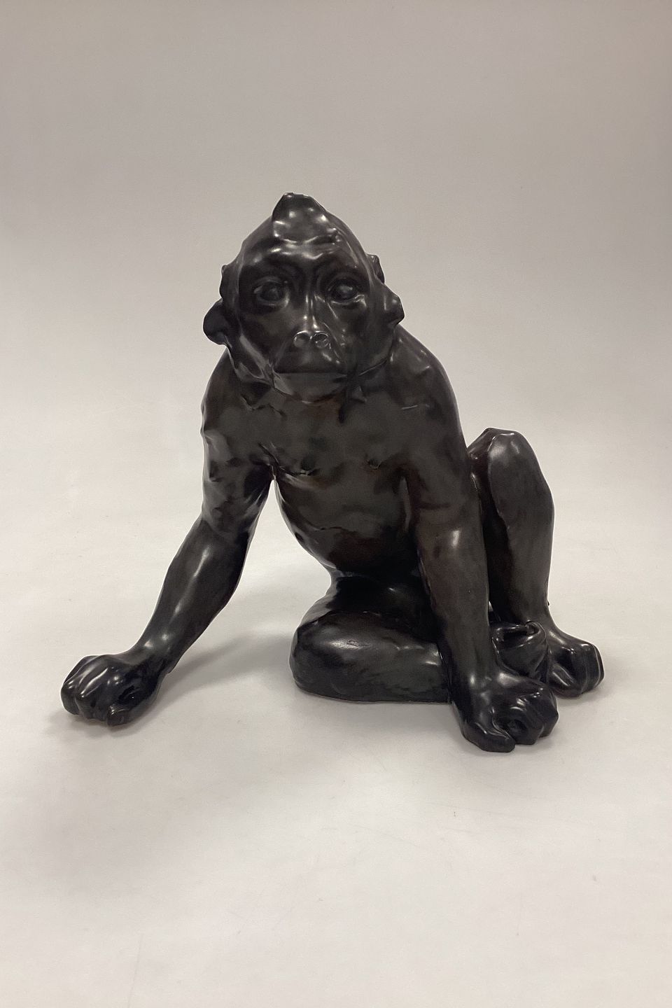 Bing og Grøndahl Jean René Gauguin Figur af Abe No. 90 eller C123. Stentøj med brun/grøn glasur. Signeret JR Gaugain.Måler: H 24,5 cm x B 27 cm / 9,64 in. x 10,62 in. 1. Sortering