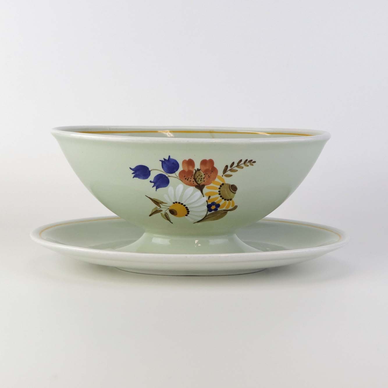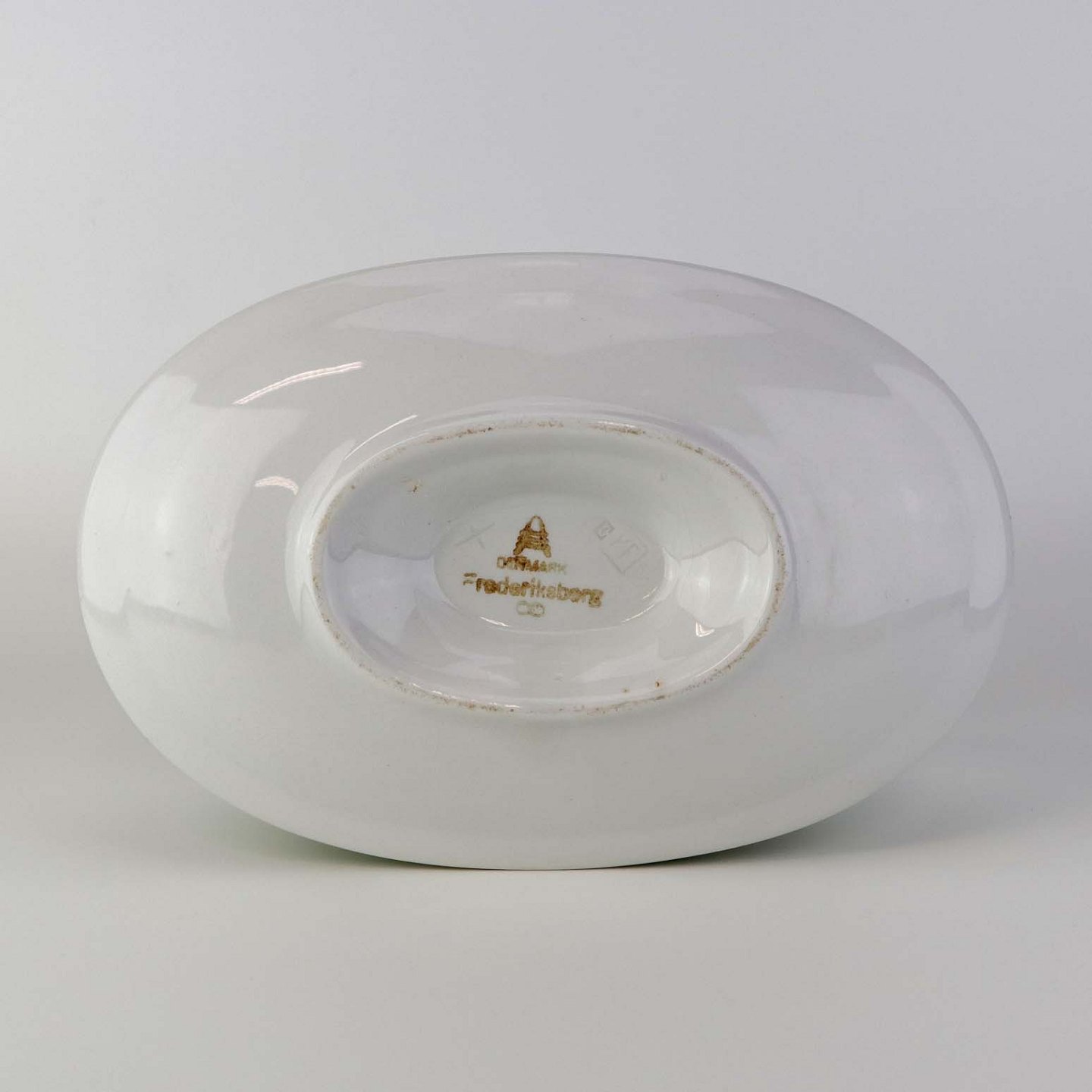 Sovseskål med fast bund i fajance fra stellet Frederiksberg.Formgiver Nils Thorsson
