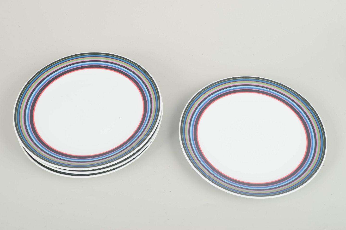 Set of four porcelain plates featuring the iconic multicoloured striped pattern designed by Alfredo Häberli for Iittala. The series combines functionality with a playful yet timeless aesthetic, making it a modern classic in Nordic tableware.