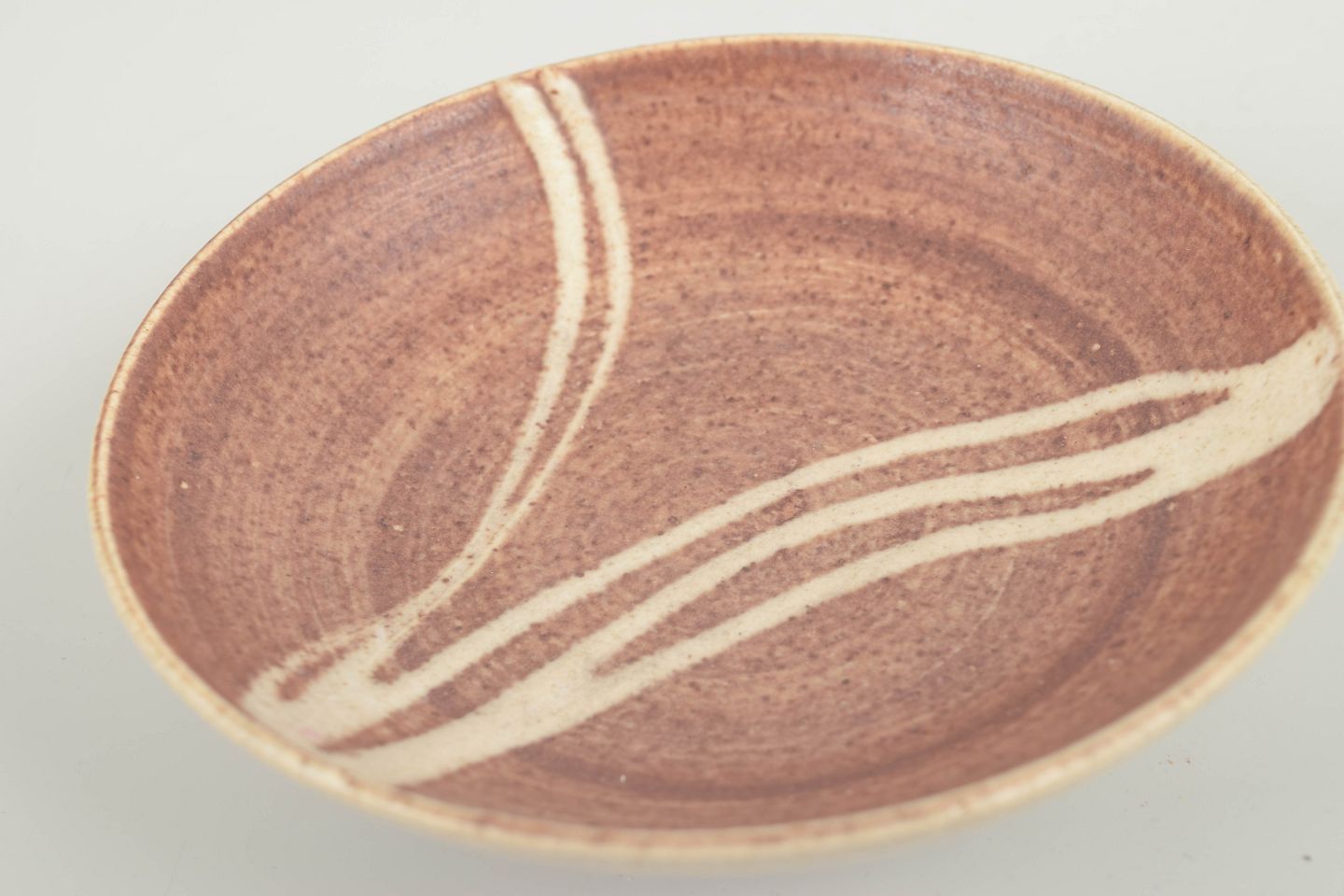 Kähler skål, 1960/70’erne.Lille hånddrejet stentøjsskål med brunlig glasur og karakteristisk hvidt penselstrøg i abstrakt dekor. Et fint eksempel på Kählers håndværk fra perioden, hvor man kombinerede enkle former med fri, kunstnerisk dekoration.
