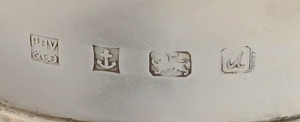 England. Birmingham. Sterling flaskebakke med træbund (925). Diameter 11 cm.