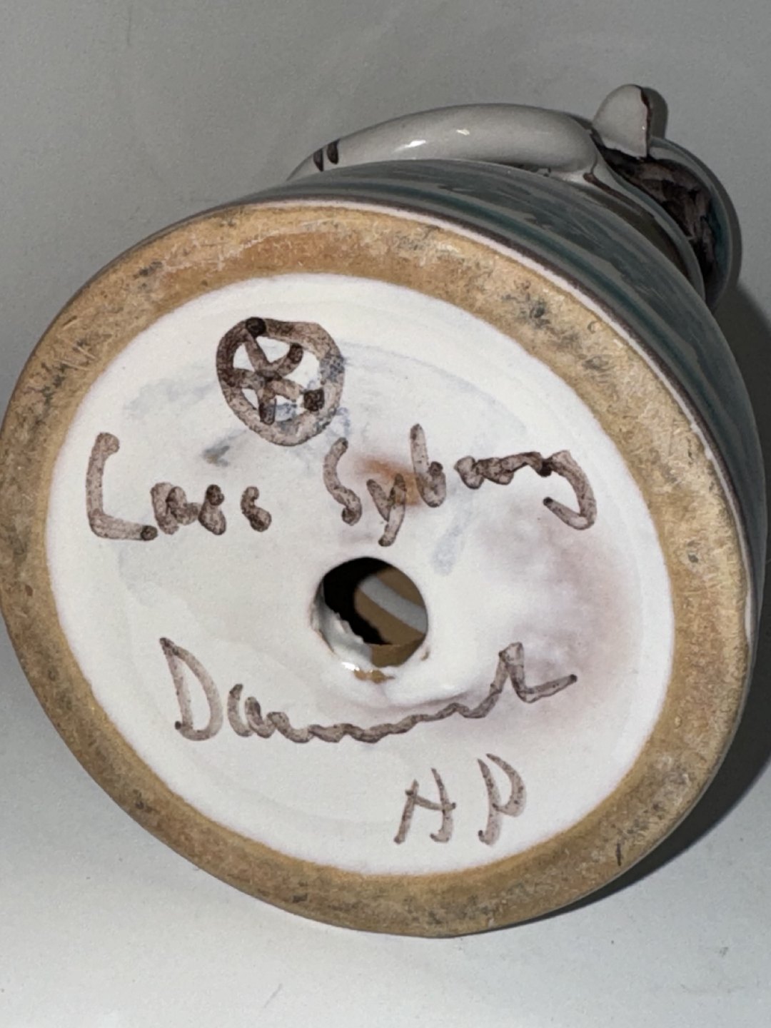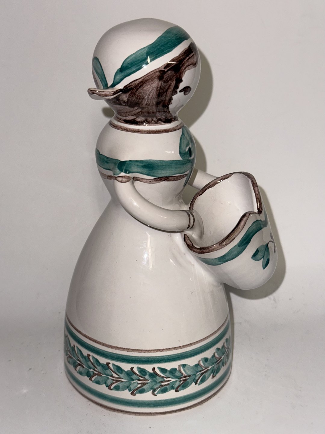 Figur i keramik fra Lars Syberg keramikfabrik i Taastrup. Designet af Alice Petersen. Hun kaldte disse pige-figurer for hendes dukker.Fremstår i fin stand. Lille overflade skrab på huen. Se foto med grå pil. Fabriksmærket på bunden. 18,5 cm høj.