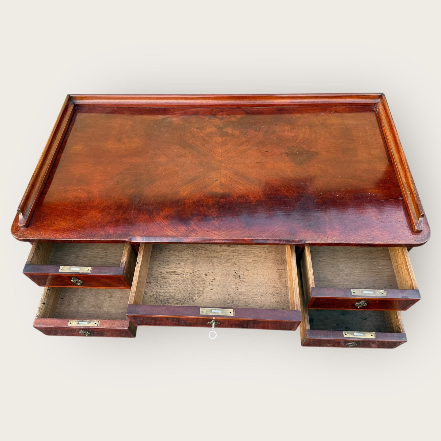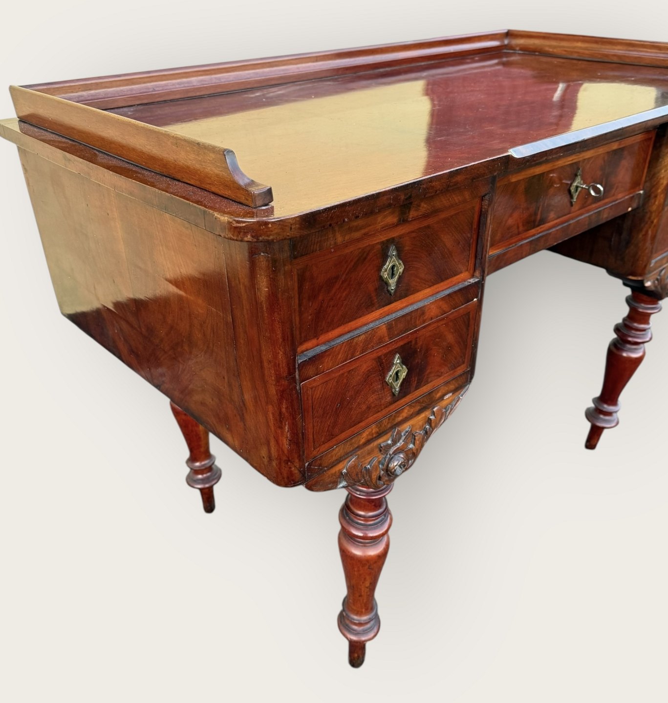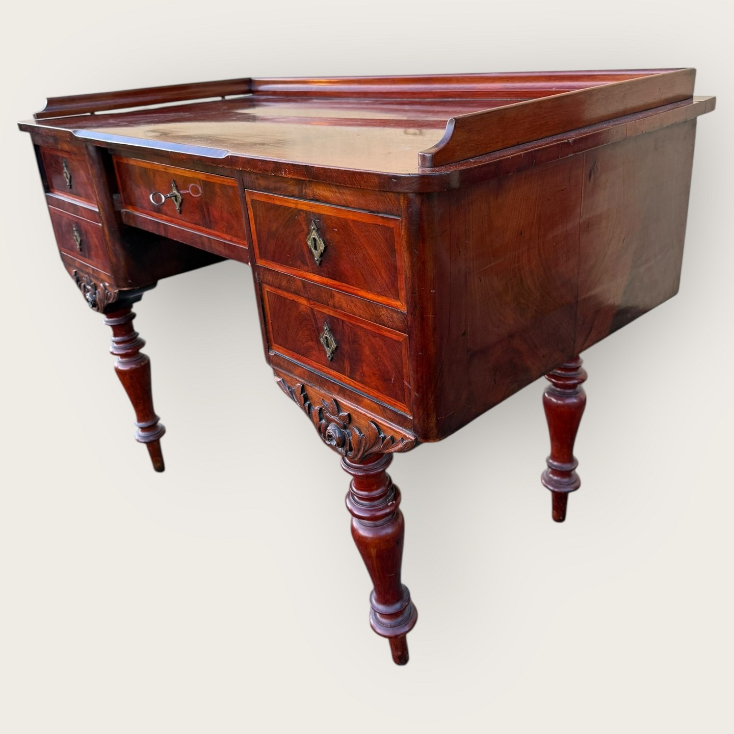 Ældre skrivebord i mahognifiner, fremstår i fin brugt stand med kun enkle mindre brugsspor, Mål: HxBxD 76x109x55cm