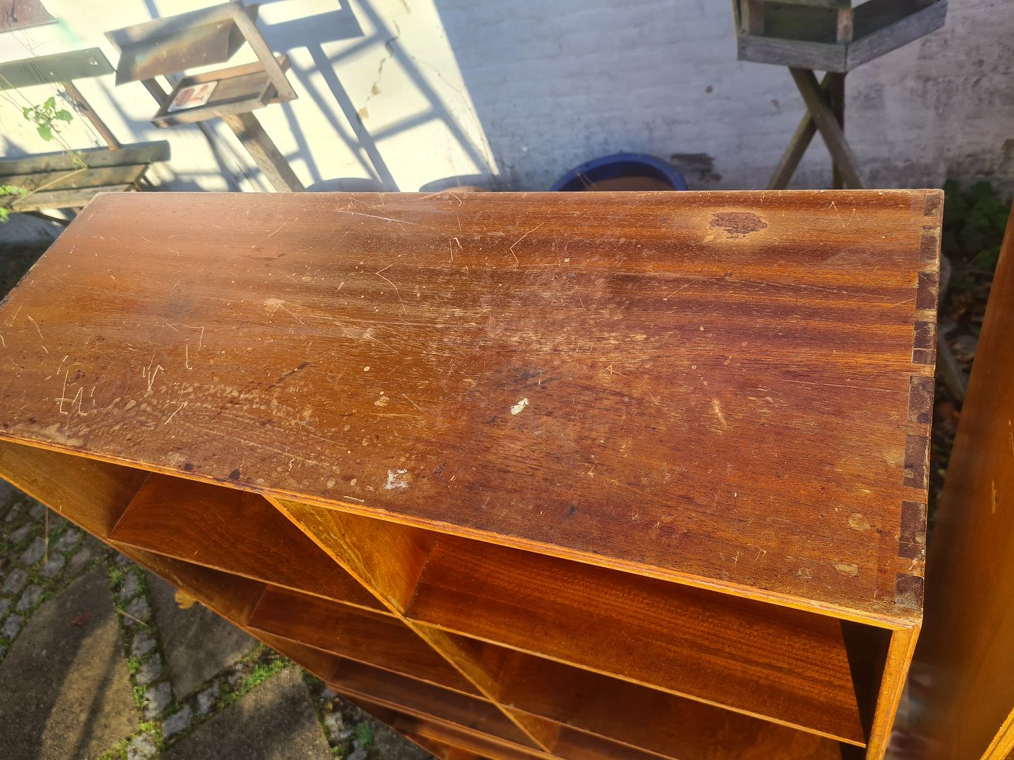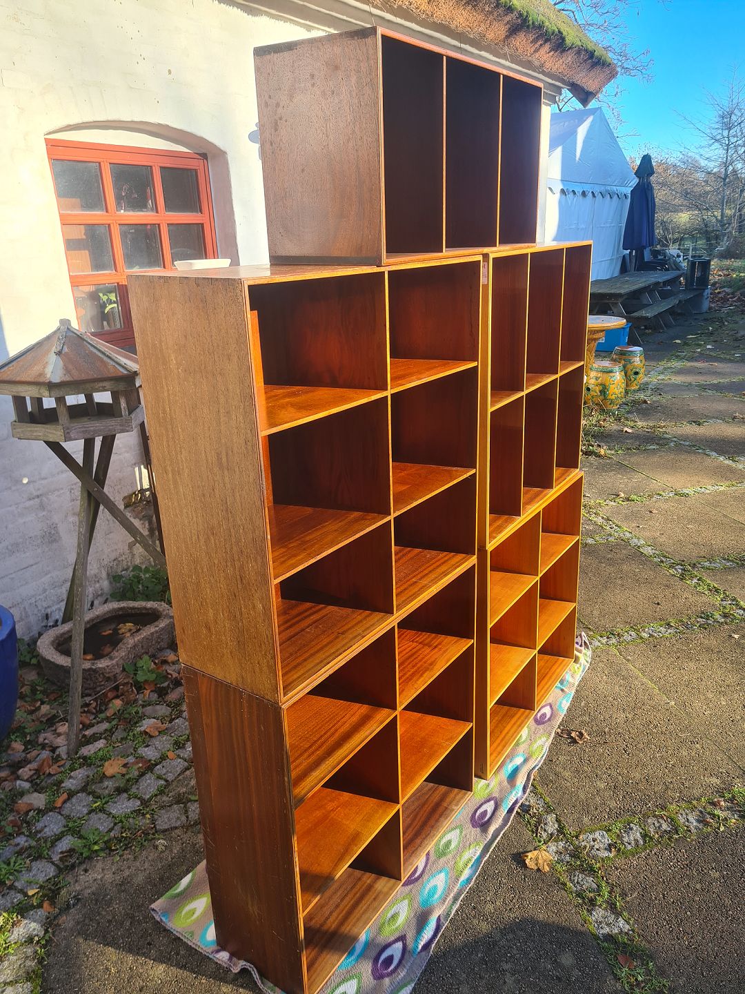 Mogens Koch reolvæg udført i massiv mahogni for Rud. Rasmussen.Mål: En hel reol, 76x76 cm. D. 27,5 cm. 4 stk.