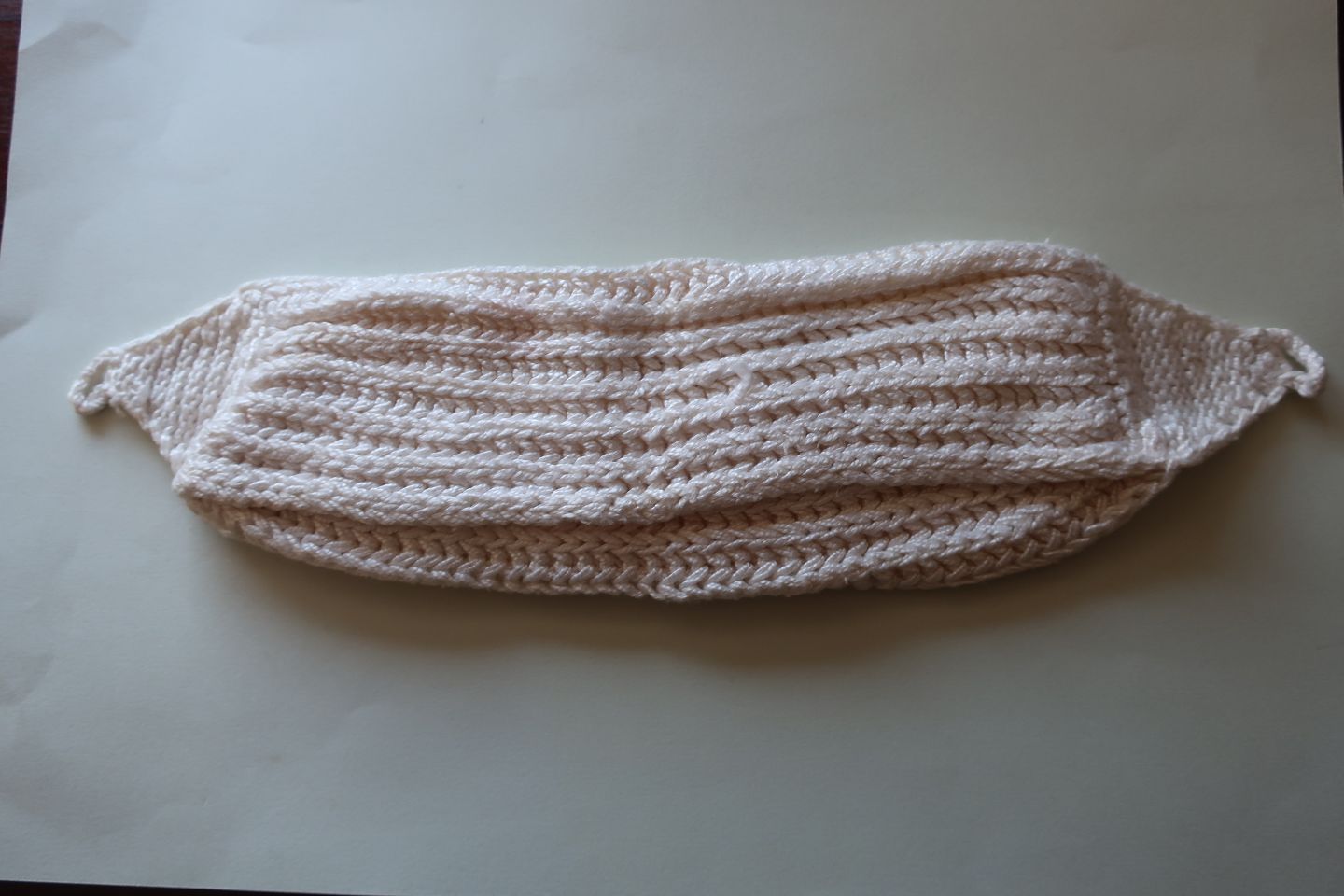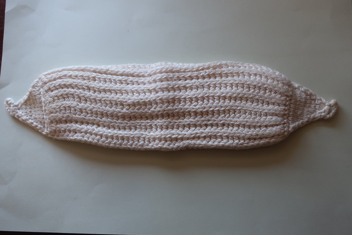 Dette er det håndstrikkede omslag, hvor man lagde hørstof eller andet indeni