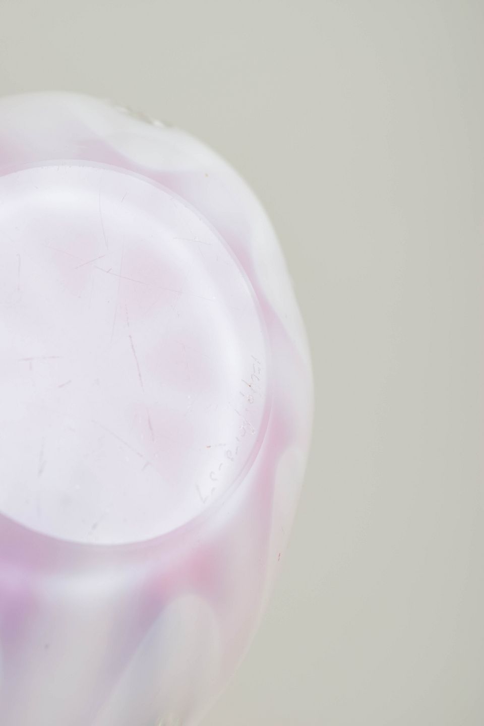Dekorativ “Coquille”-skål i flerlaget kunstglas med rosa indre farvespil, hvidt mellem­lag og klart yderste glas. Den bølgede, blomsterlignende form repræsenterer en af Kedelvs mere skulpturelle variationer inden for serien.