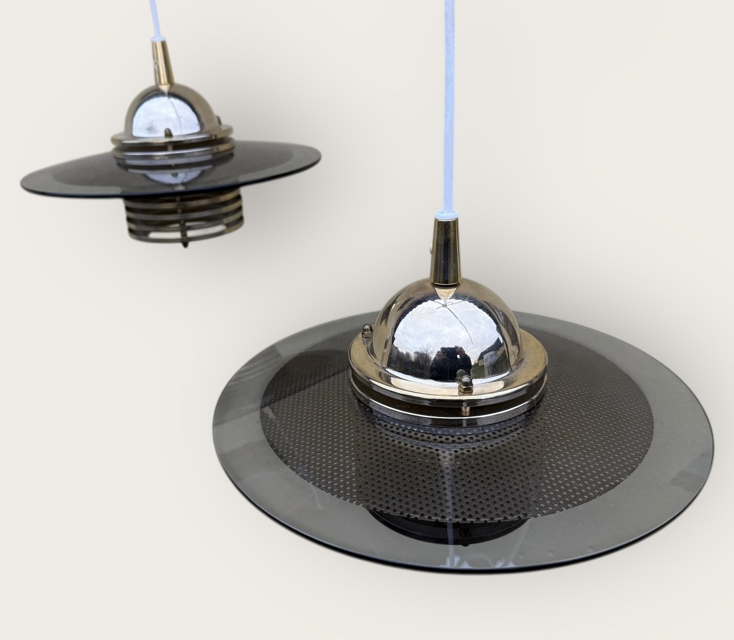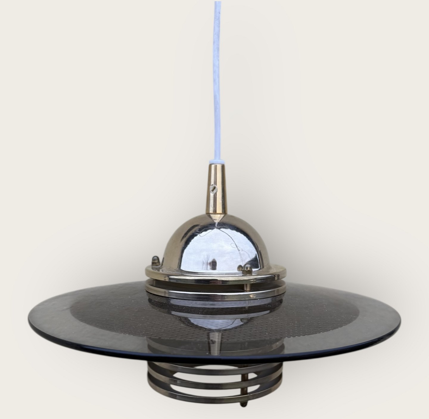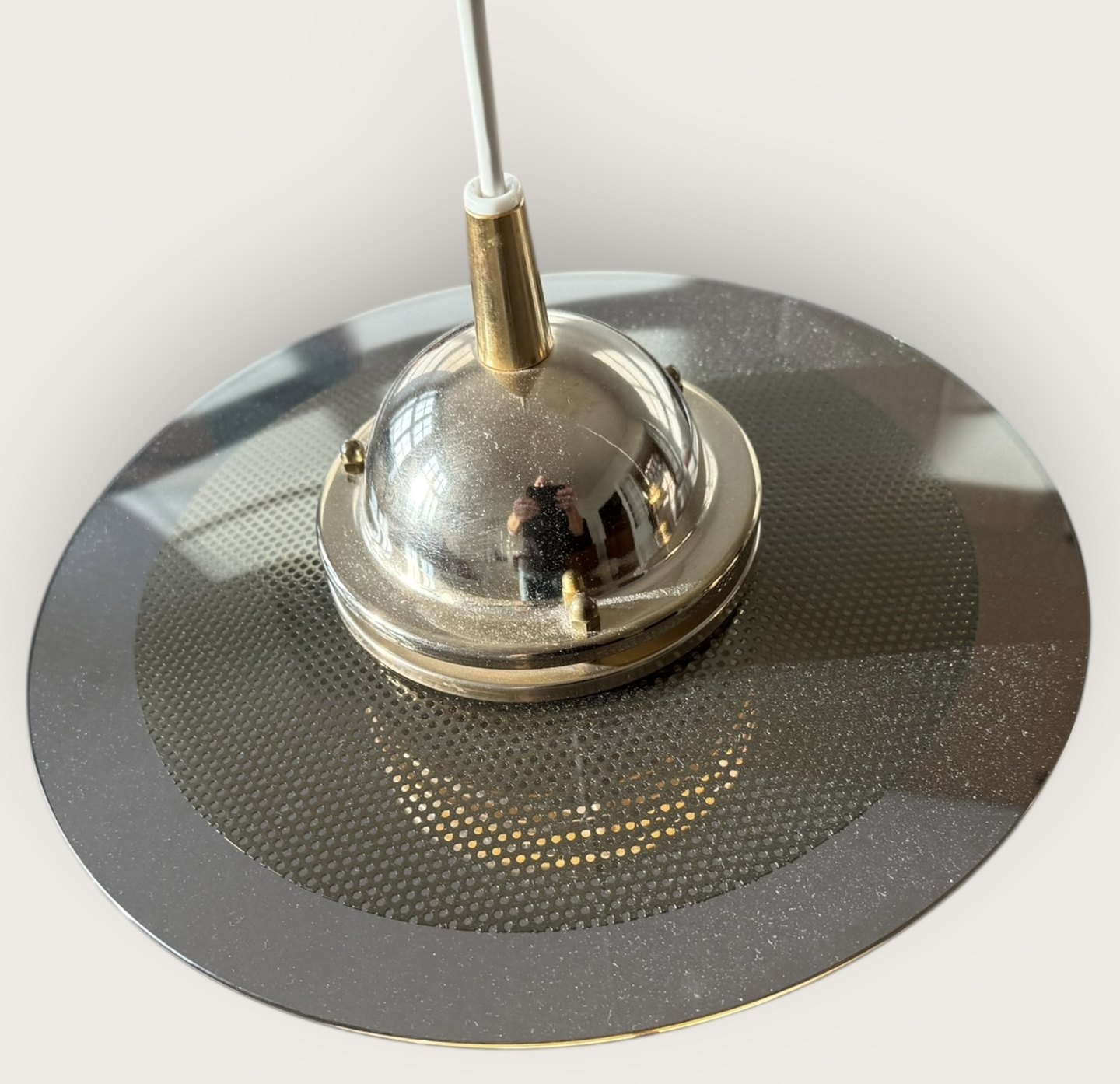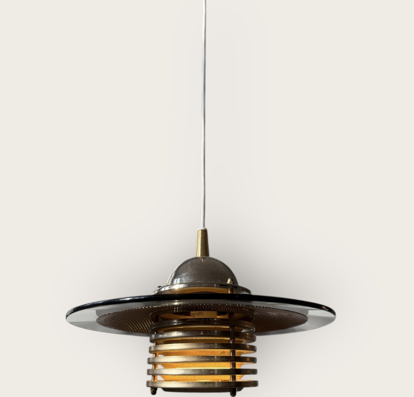 Jan-Eskild Eskildsson, Belid, Sverige, Reflektor Loftlampe i røgfarvet glas og messing, Diameter 29cm *pæn stand*Lager: 2