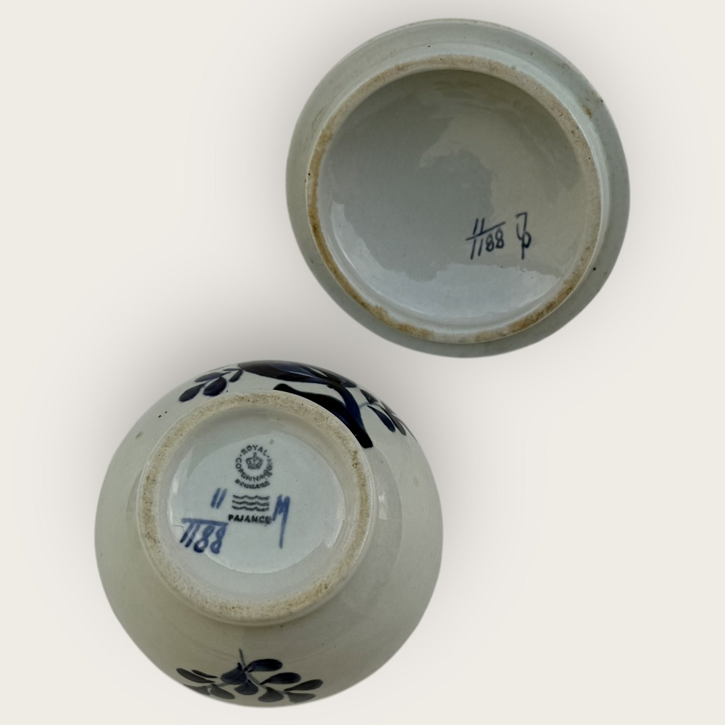 Royal Copenhagen, Trankebar, Sukkerskål med låg #11/1188, Højde 8cm, 7,5cm i diameter, 1. sortering, Design Christian Joachim *Pæn stand*Lager: 1