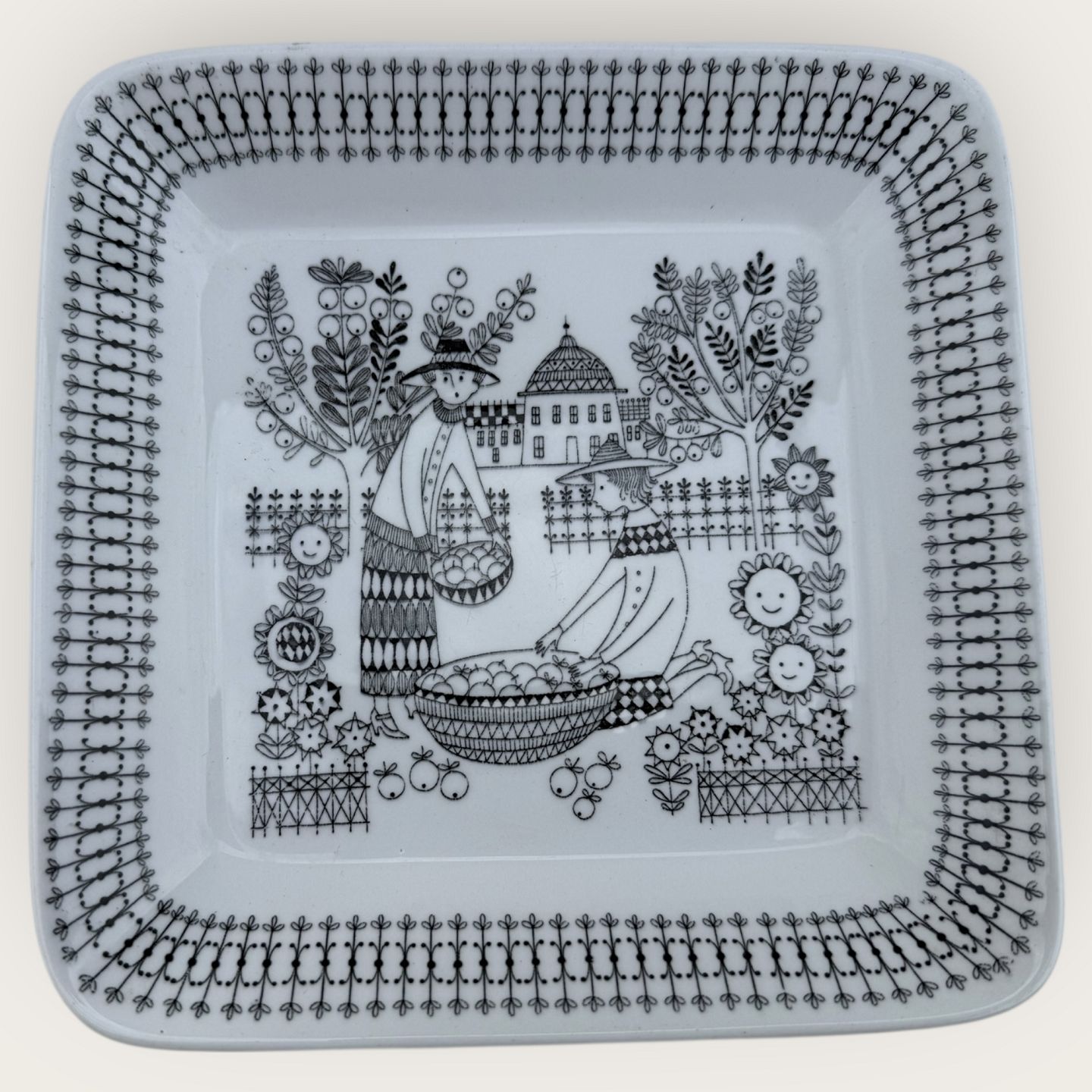 Arabia, Finland, Design Raija Uosikkinen, Emilia kollektionen fra 1959 med sommermotiver, 18x18cm *Pæn stand*Lager: 1