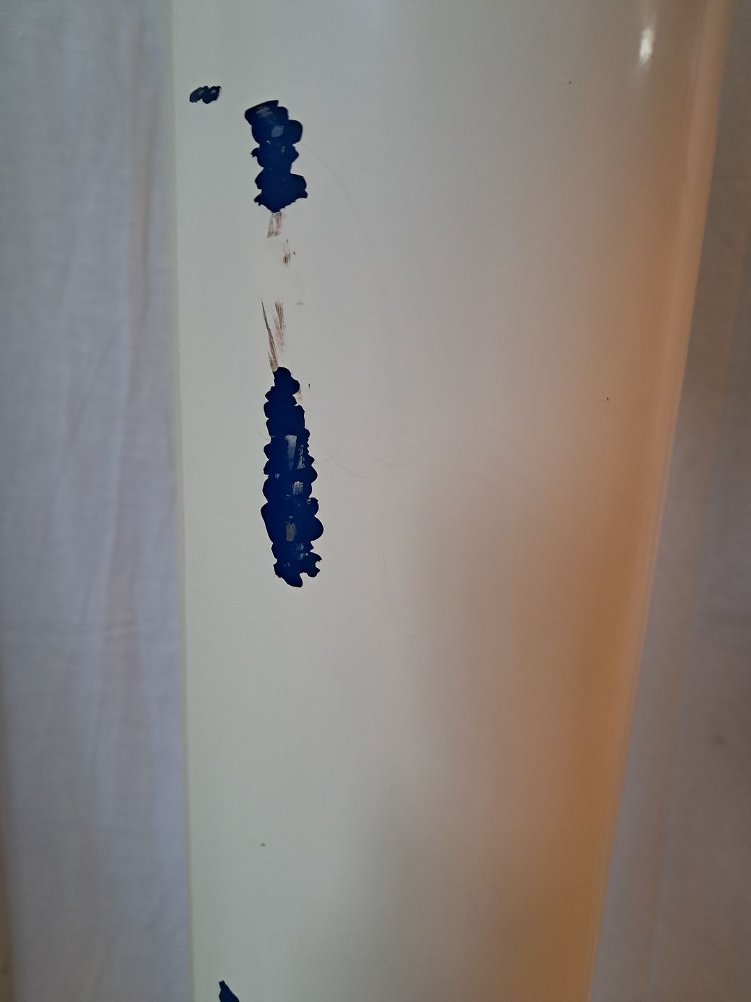 Standerlampe i metal og plast, fra 1980erne.Den har brugsspor.