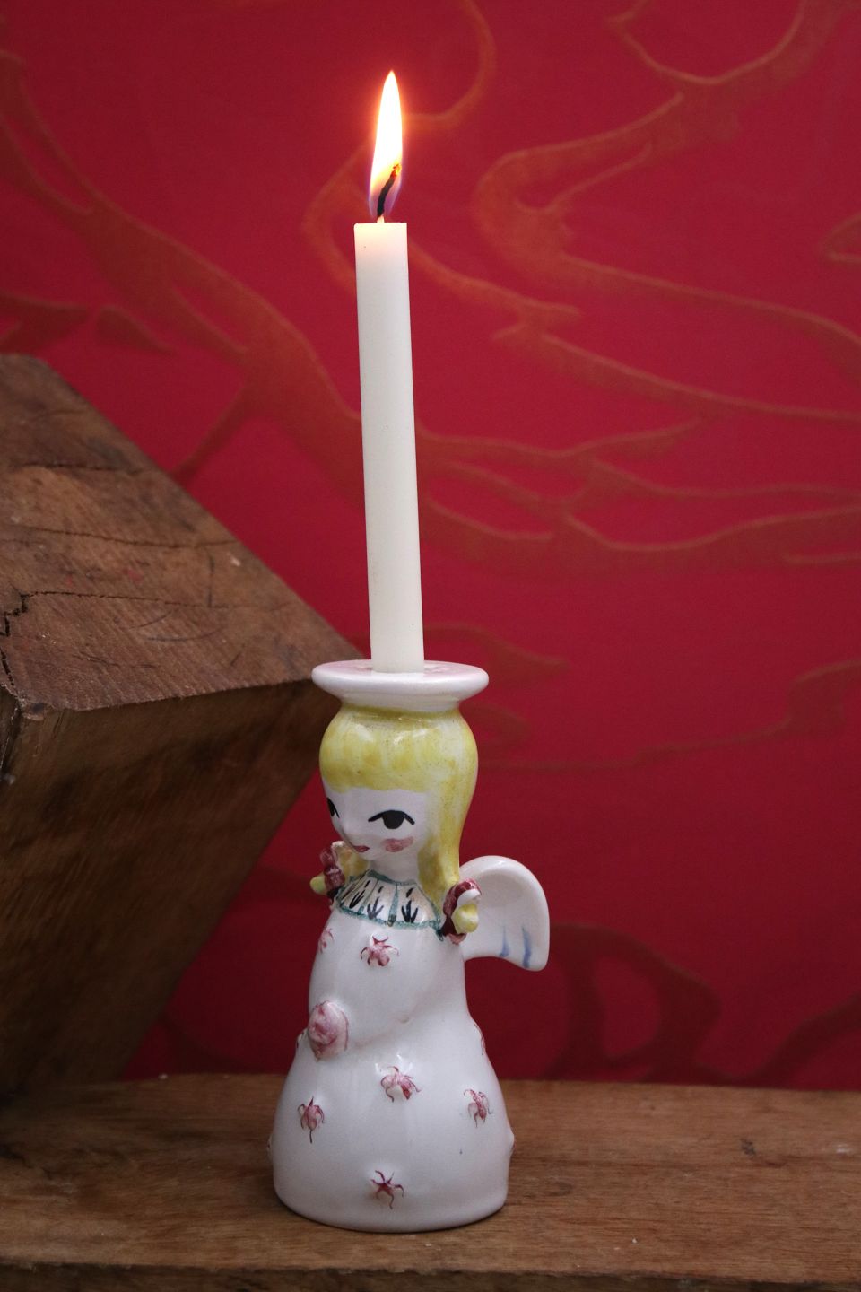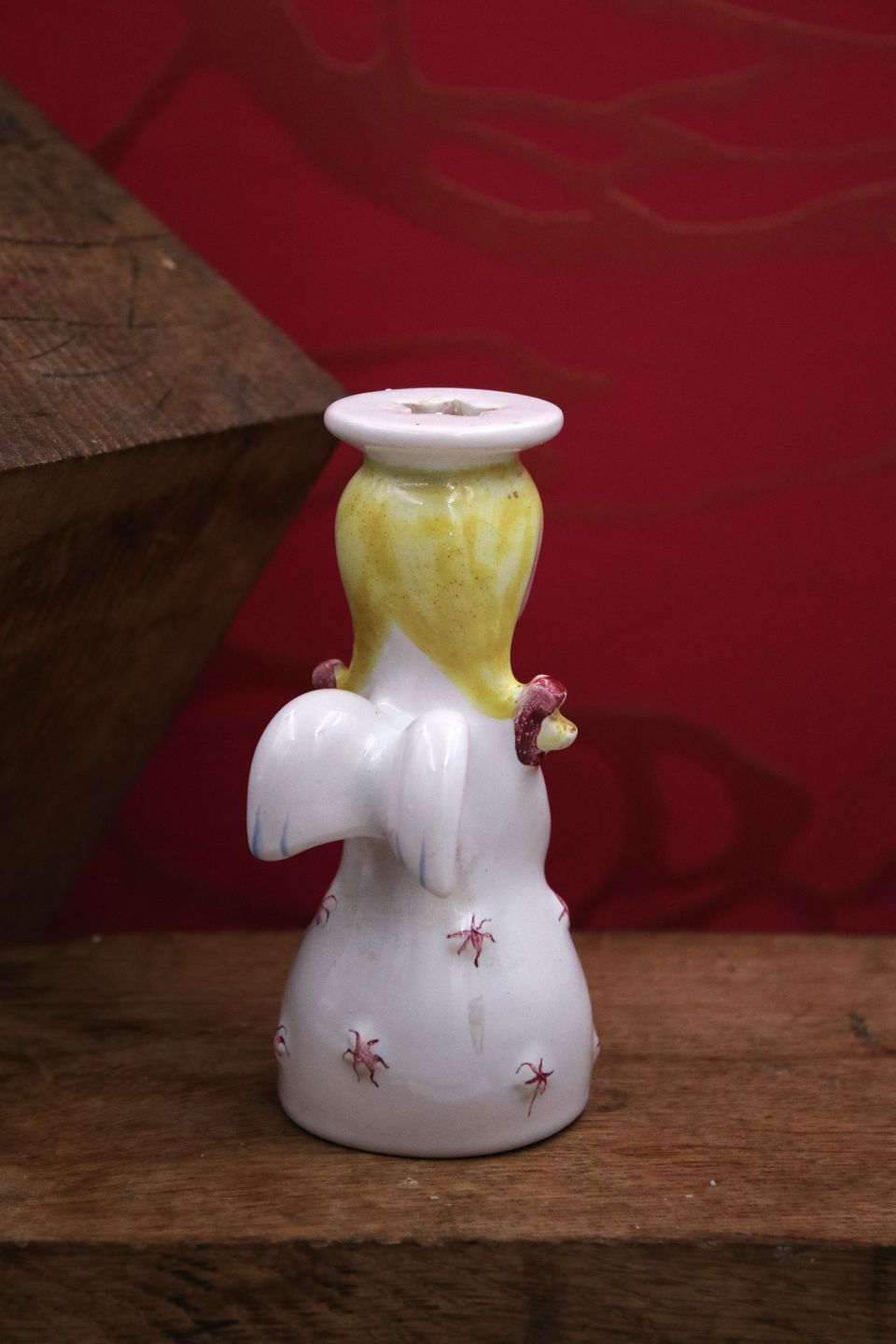 Nymølle jule engel med gult hår i fajance med plads