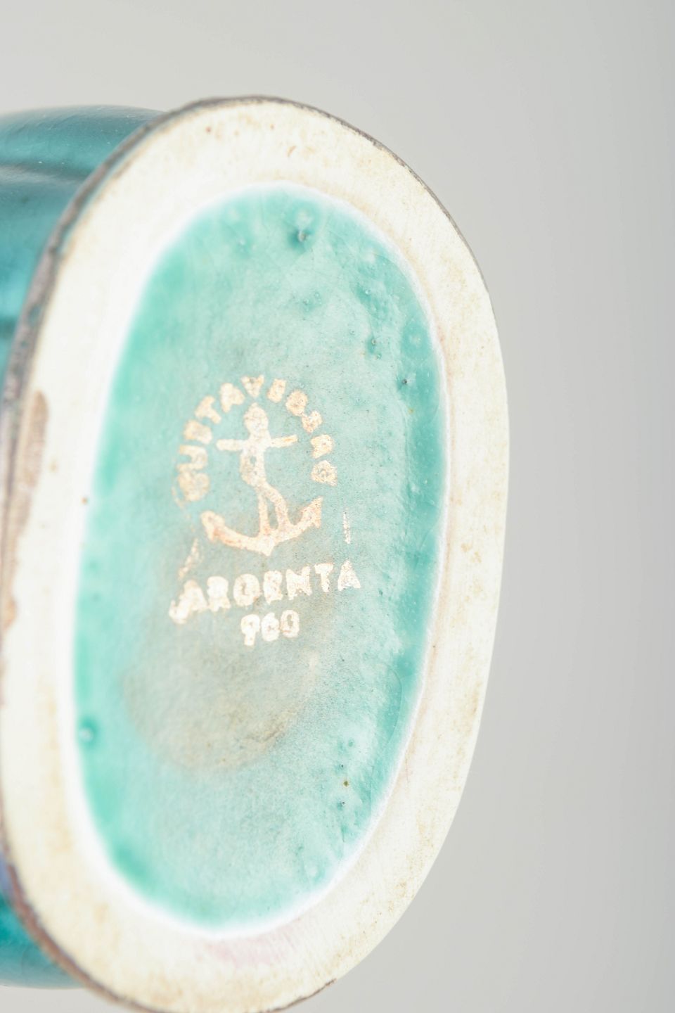 Willhelm Kåge (1889–1960) var en af Gustavsbergs mest betydningsfulde designere og skabte Argenta-serien i 1930’erne. Serien kombinerer farvemættede glasurer med dekorative sølvindlæg og er blevet et af de mest genkendelige ikoniske udtryk i svensk keramisk design. Kåges arbejde for Gustavsberg fik stor international opmærksomhed og er i dag højt værdsat blandt samlere.