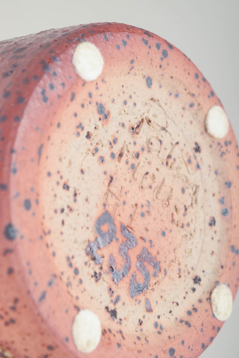 Rolf Palm (1930–2018) var en af Sveriges mest markante studiokeramikere. Han arbejdede fra sit værksted i Mölle fra slutningen af 1950’erne og blev kendt for sine robuste former, dybe jordfarver og eksperimenterende teksturelle glasurer. Palms produktion var hovedsageligt håndlavet i små serier eller som unika, hvilket gør hans værker særligt eftertragtede blandt samlere.