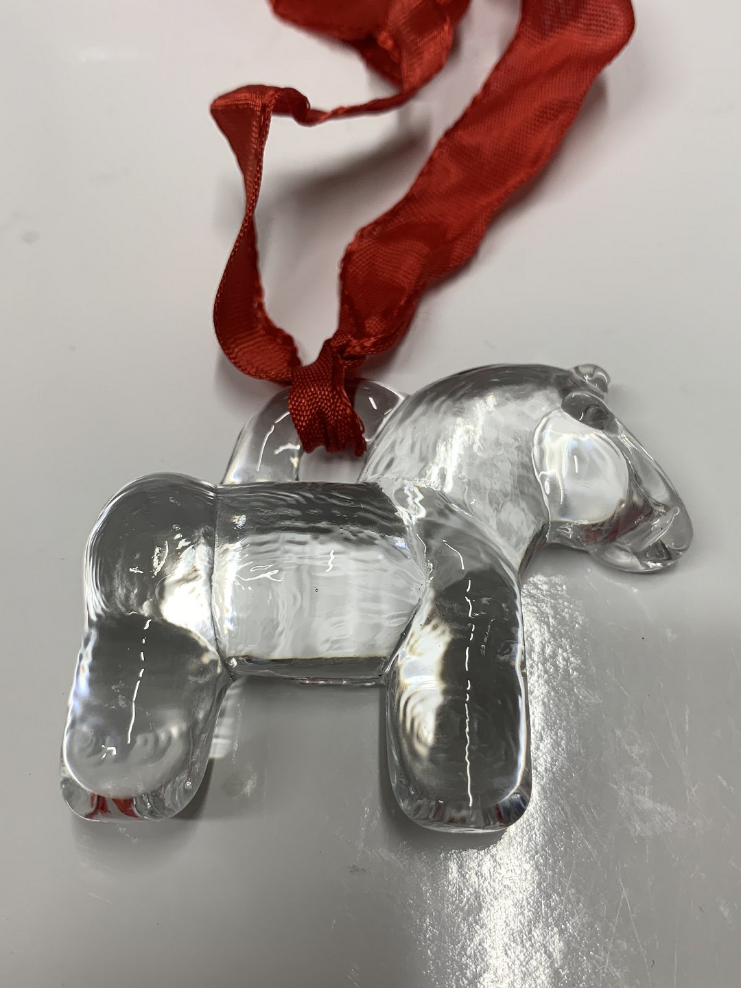 Super flot juleophæng i glas, designet af Bertil Vallien for Kosta Boda. Hæng den søde hest på juletræet, en gren, i vinduet eller ned fra loftet. Den fremstår i flot og hel stand.Højde: 4,6 cm.