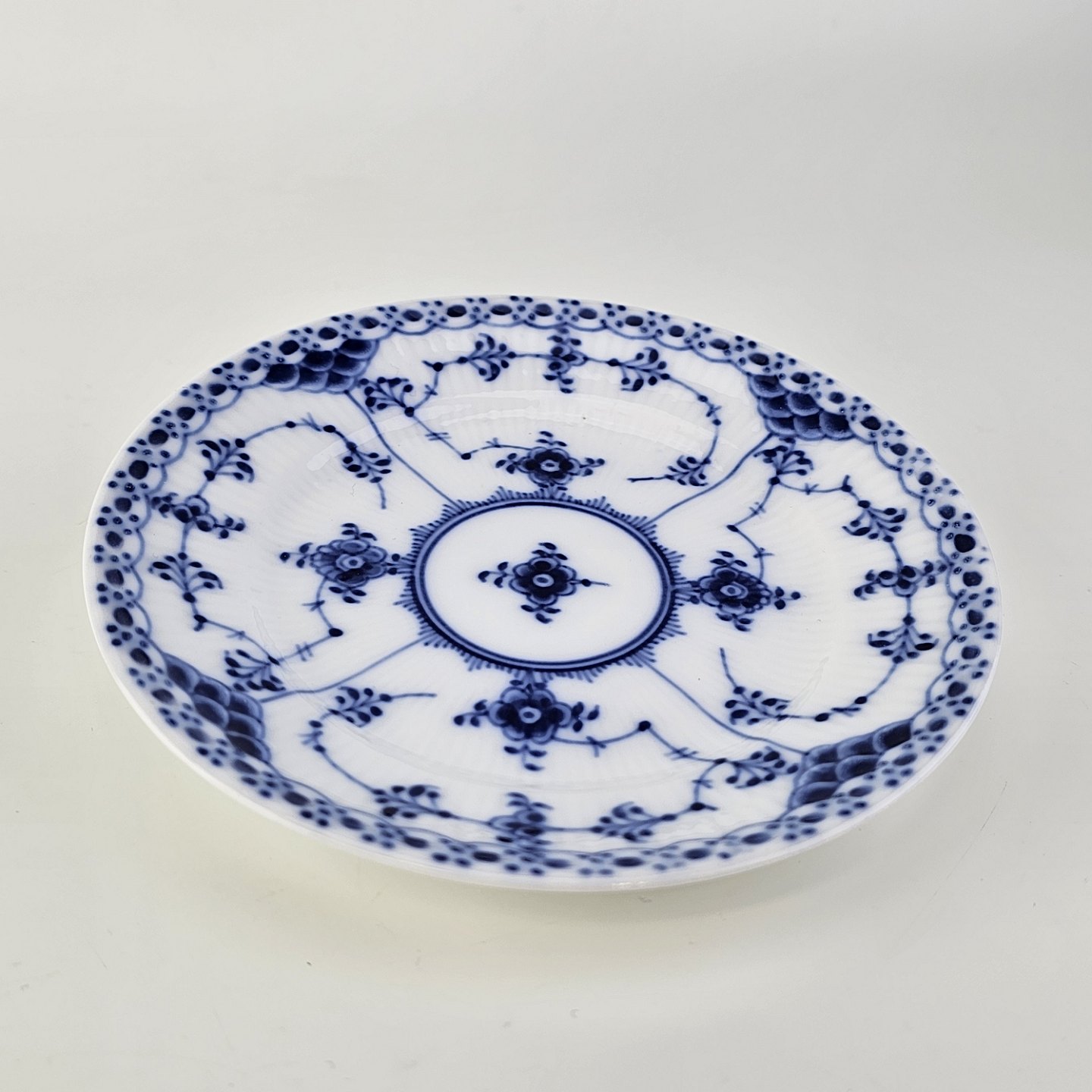 Flad kagetallerken i kongeligt porcelæn fra stellet Musselmalet HalvblondeNr. 1/653