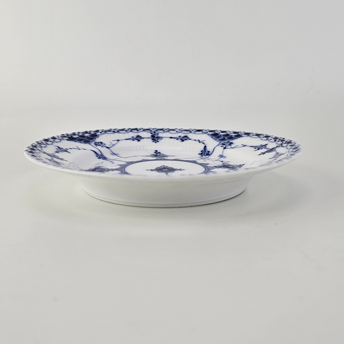 Flad sidetallerken i kongeligt porcelæn fra stellet Musselmalet HalvblondeNr. 1/576