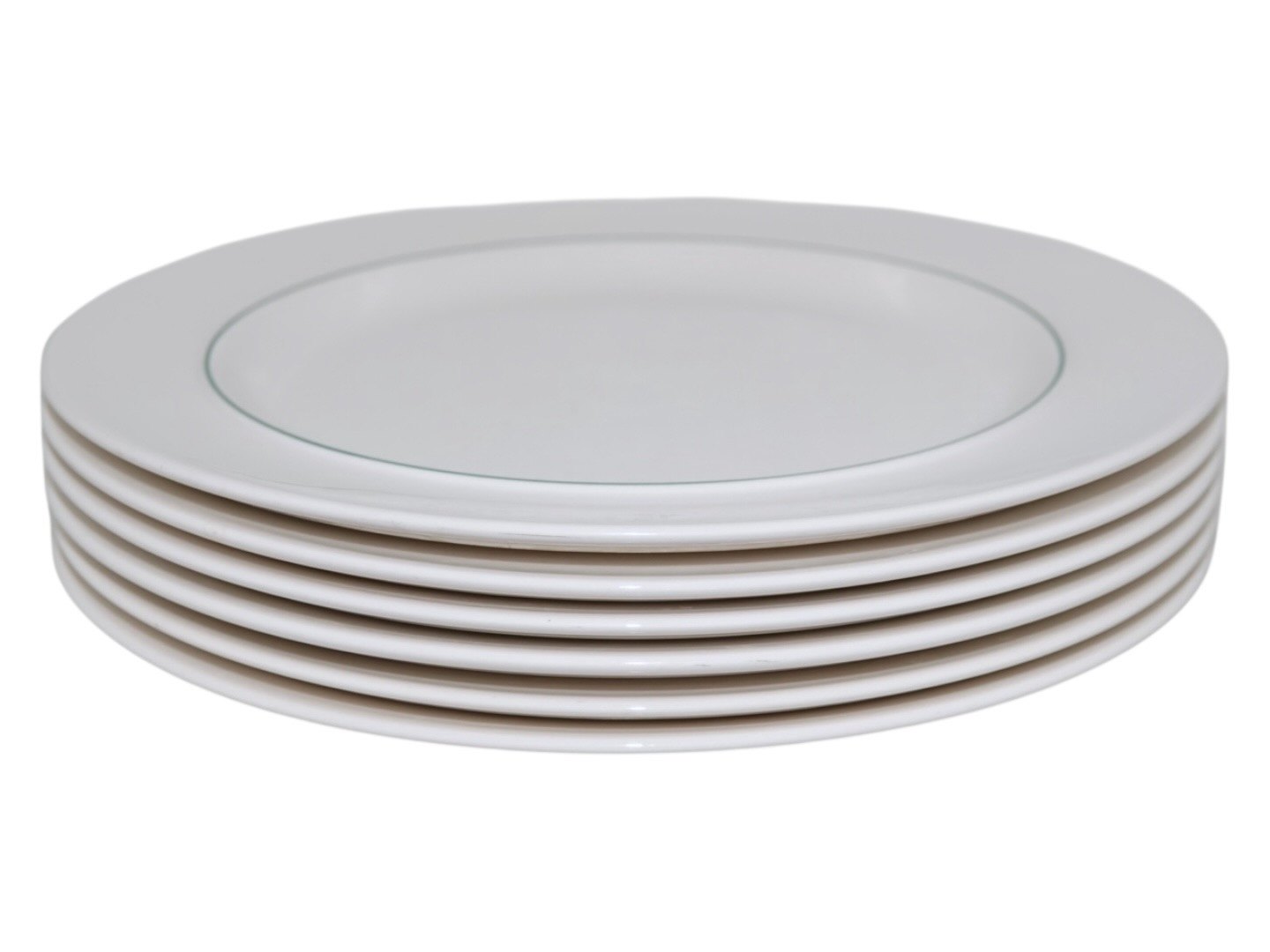 Royal Copenhagen 4 all seasons, frokosttallerken med grøn kant.Designet af Grethe Meyer i 1998 på samme stelform som Blåkant.