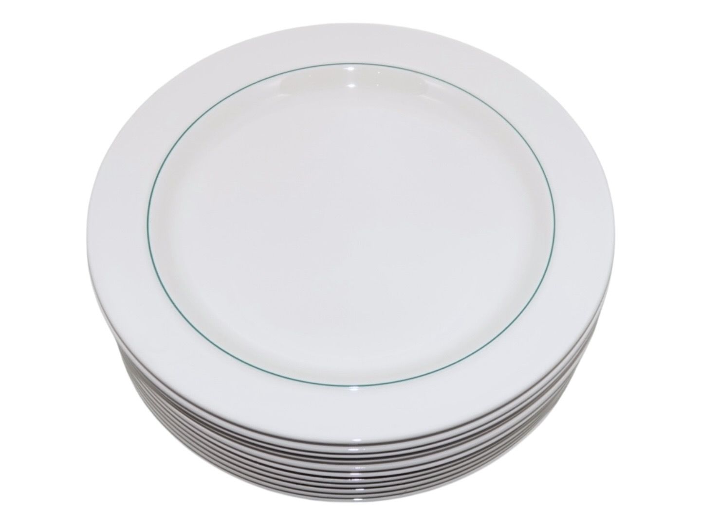 Royal Copenhagen 4 all seasons, middagstallerken med grøn kant.Designet af Grethe Meyer i 1998 på samme stelform som Blåkant.