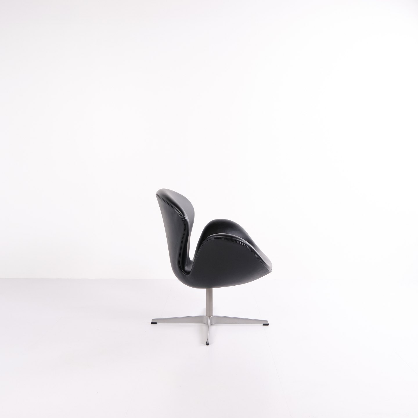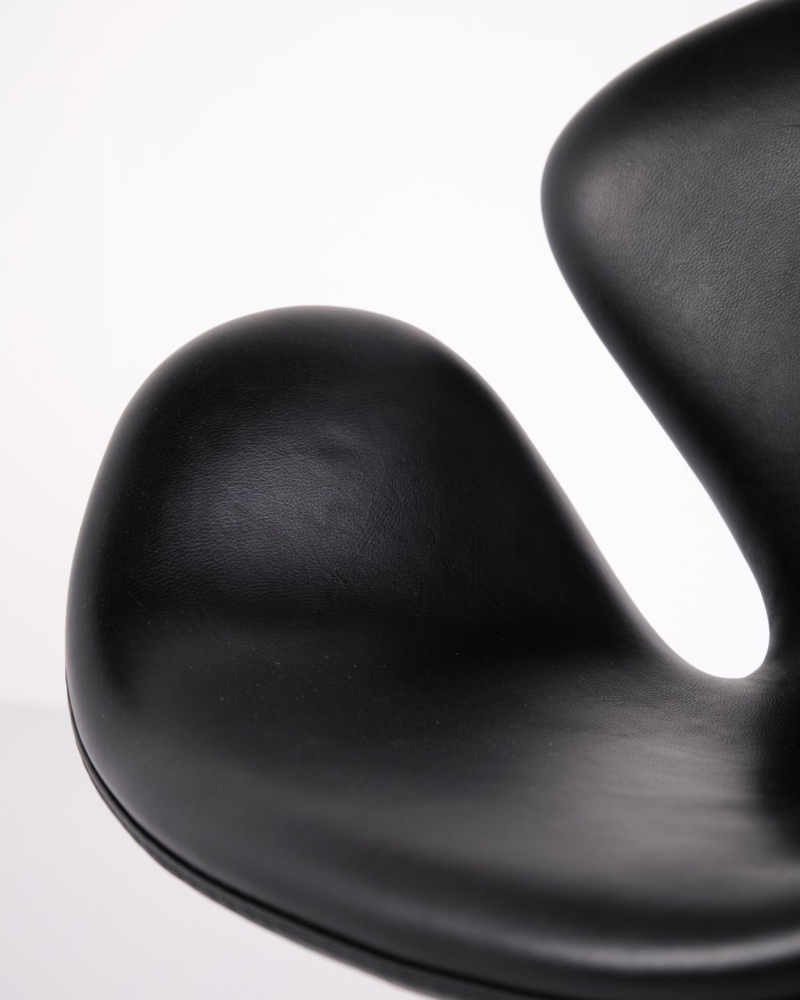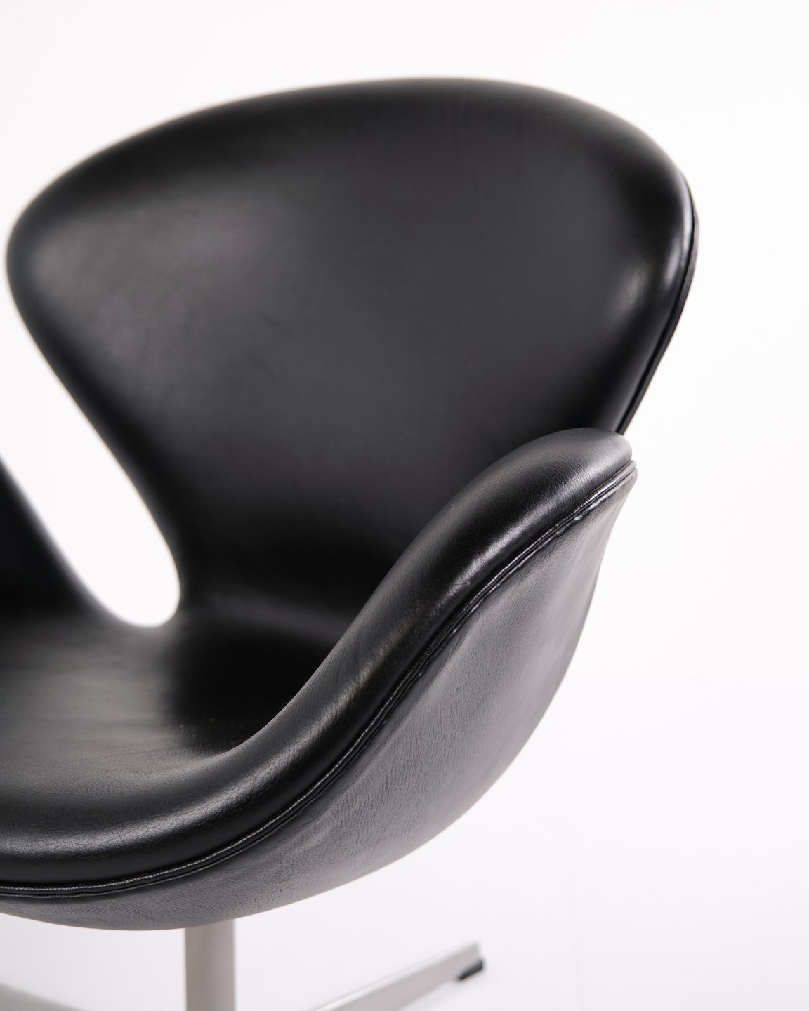 Svane stol designet af Arne Jacobsen og fremstillet af Fritz Hansen i 2002. Udført i sort Elegance læder, som er en højkvalitets anilinlæder med smuk dybde og naturlig struktur. Modellen er en videreførelse af Jacobsens originale design fra 1958 og produceret i Danmark med samme håndværksstandard som de tidlige udgaver.Lagerantal 2 stk.