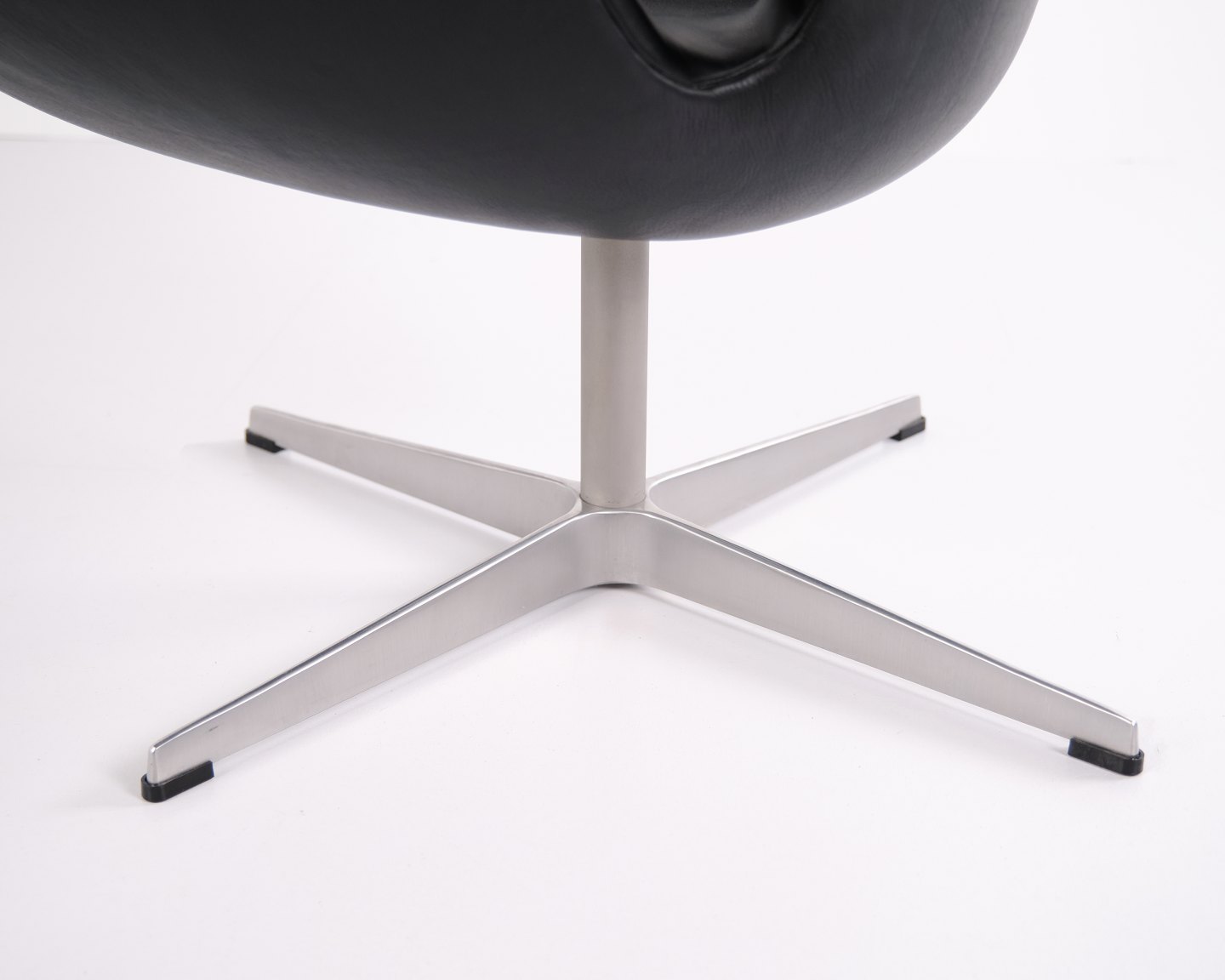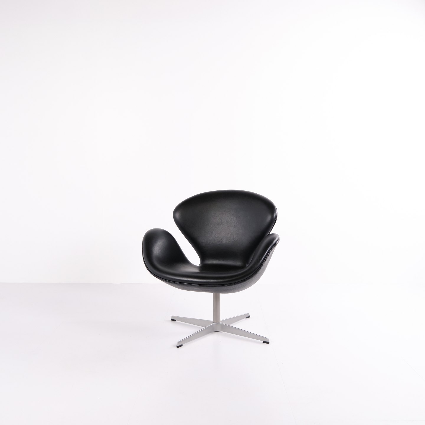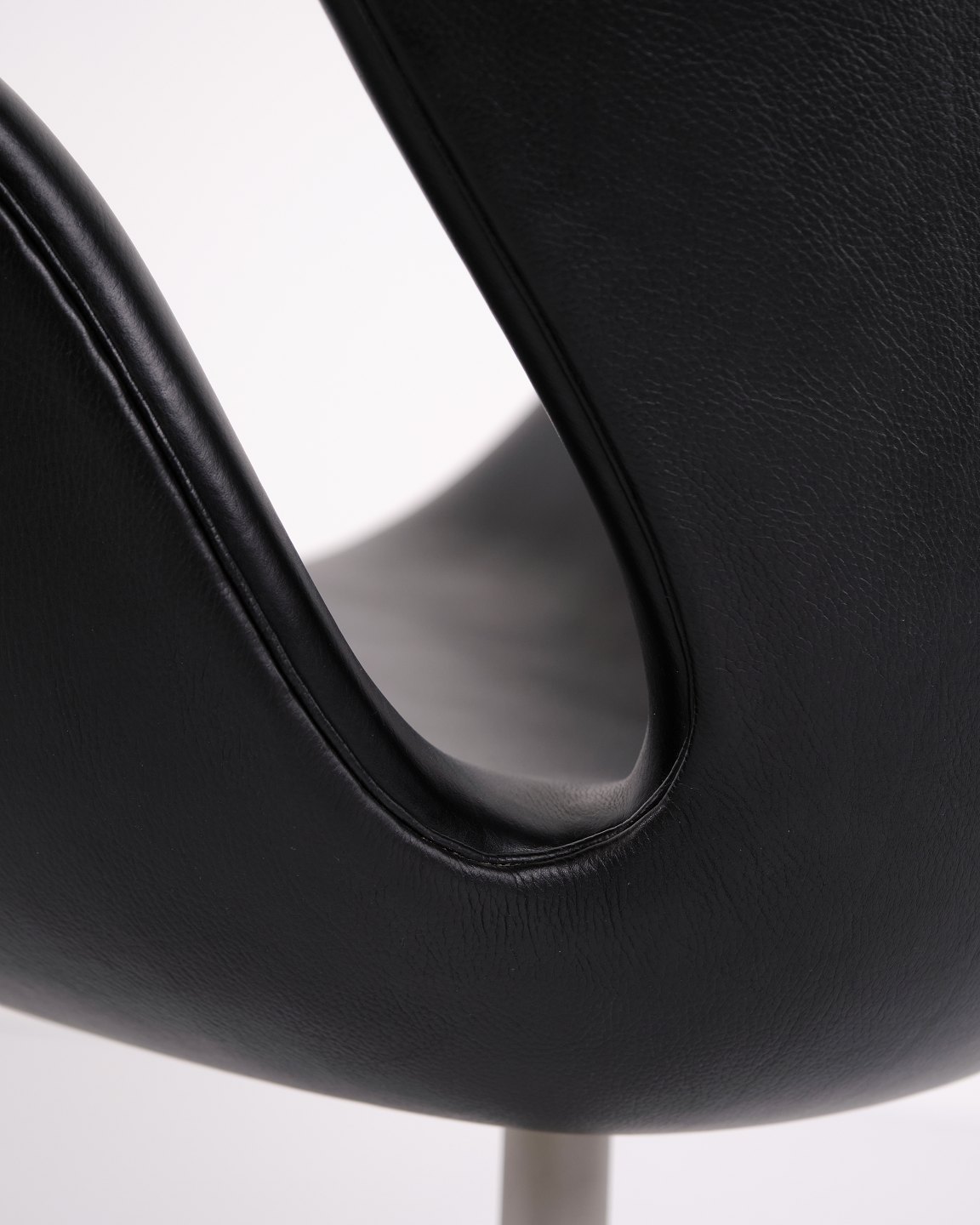 Svane stol designet af Arne Jacobsen og fremstillet af Fritz Hansen i 2002. Udført i sort Elegance læder, som er en højkvalitets anilinlæder med smuk dybde og naturlig struktur. Modellen er en videreførelse af Jacobsens originale design fra 1958 og produceret i Danmark med samme håndværksstandard som de tidlige udgaver.Lagerantal 2 stk.