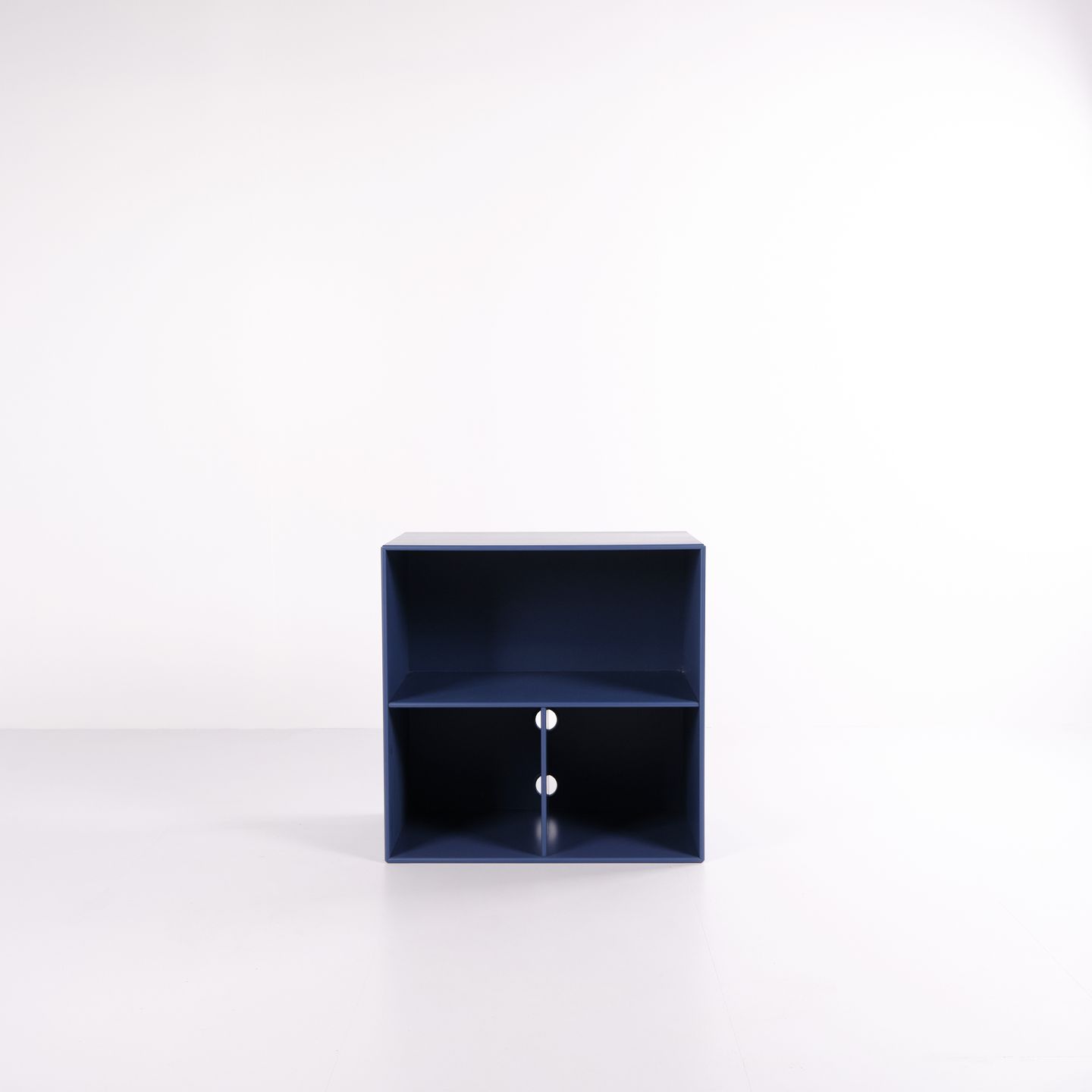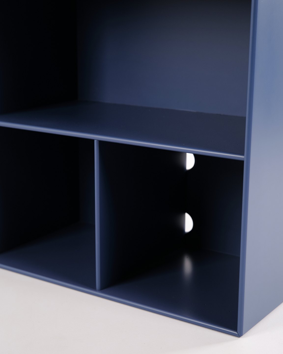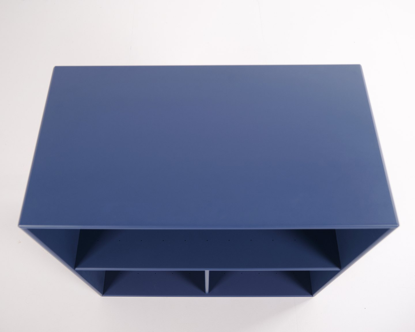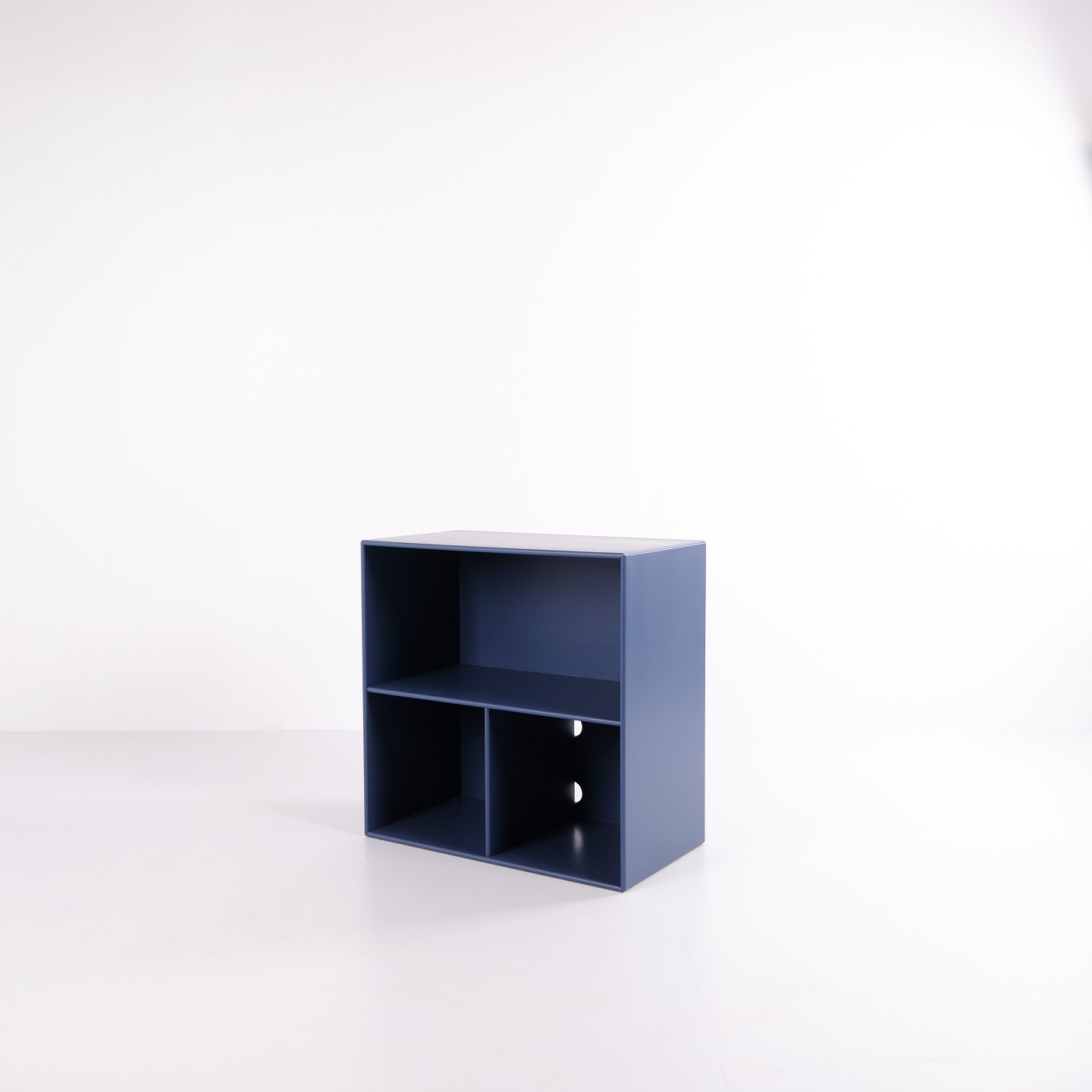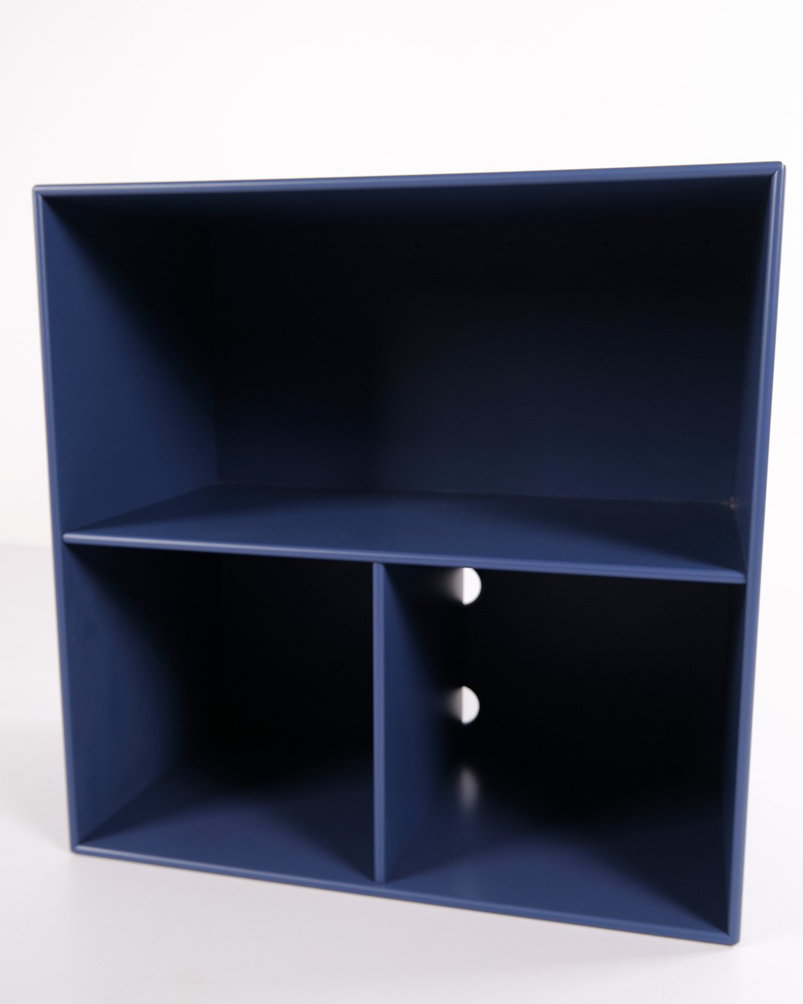 Montana reol i blå med krom ben. Udstyret med tre åbne hylder, ideel til opbevaring eller udstilling i stue, kontor eller entré. Klassisk Montana-modul med enkel opbygning og høj funktionalitet.— Producent: Montana
