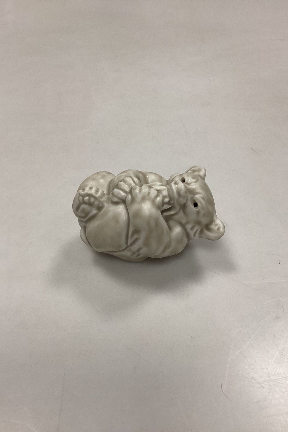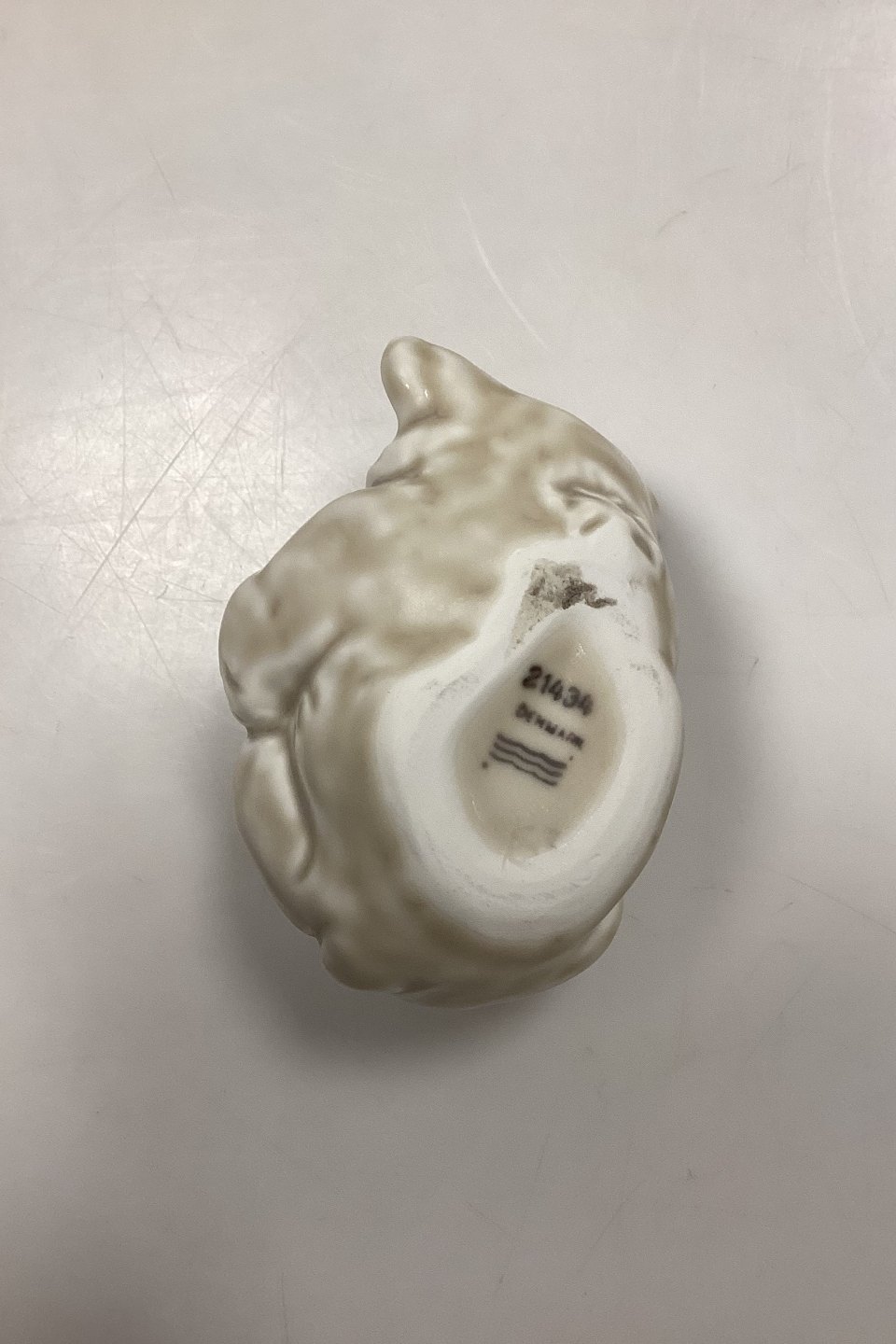Royal Copenhagen Stentøjsfigur Hvid Bjørneunge No. 21434. Designet af Knud Kyhn. Mat glasur i hvidbeige nuancer.Måler 8,5 cm / 3,34 in.