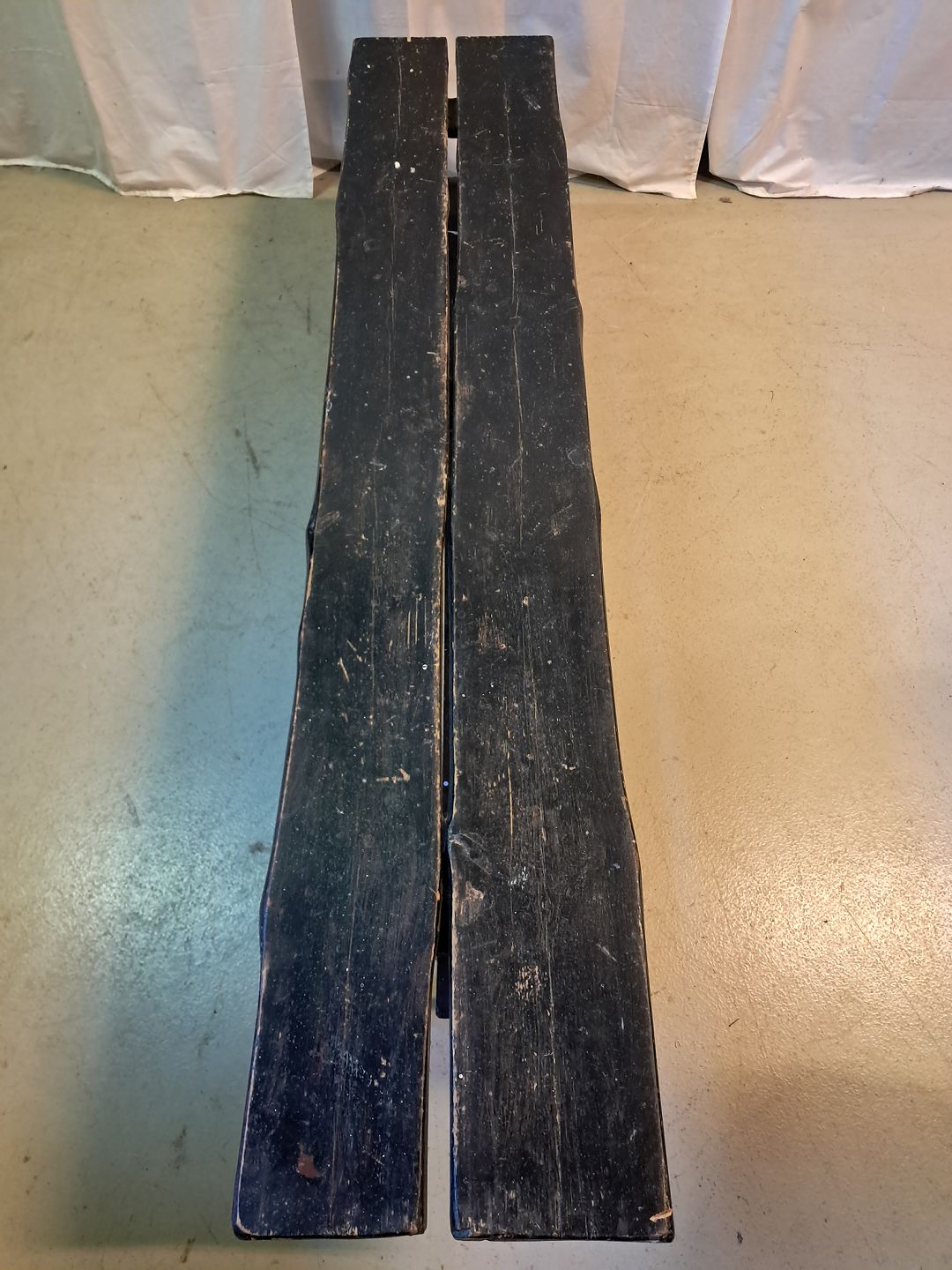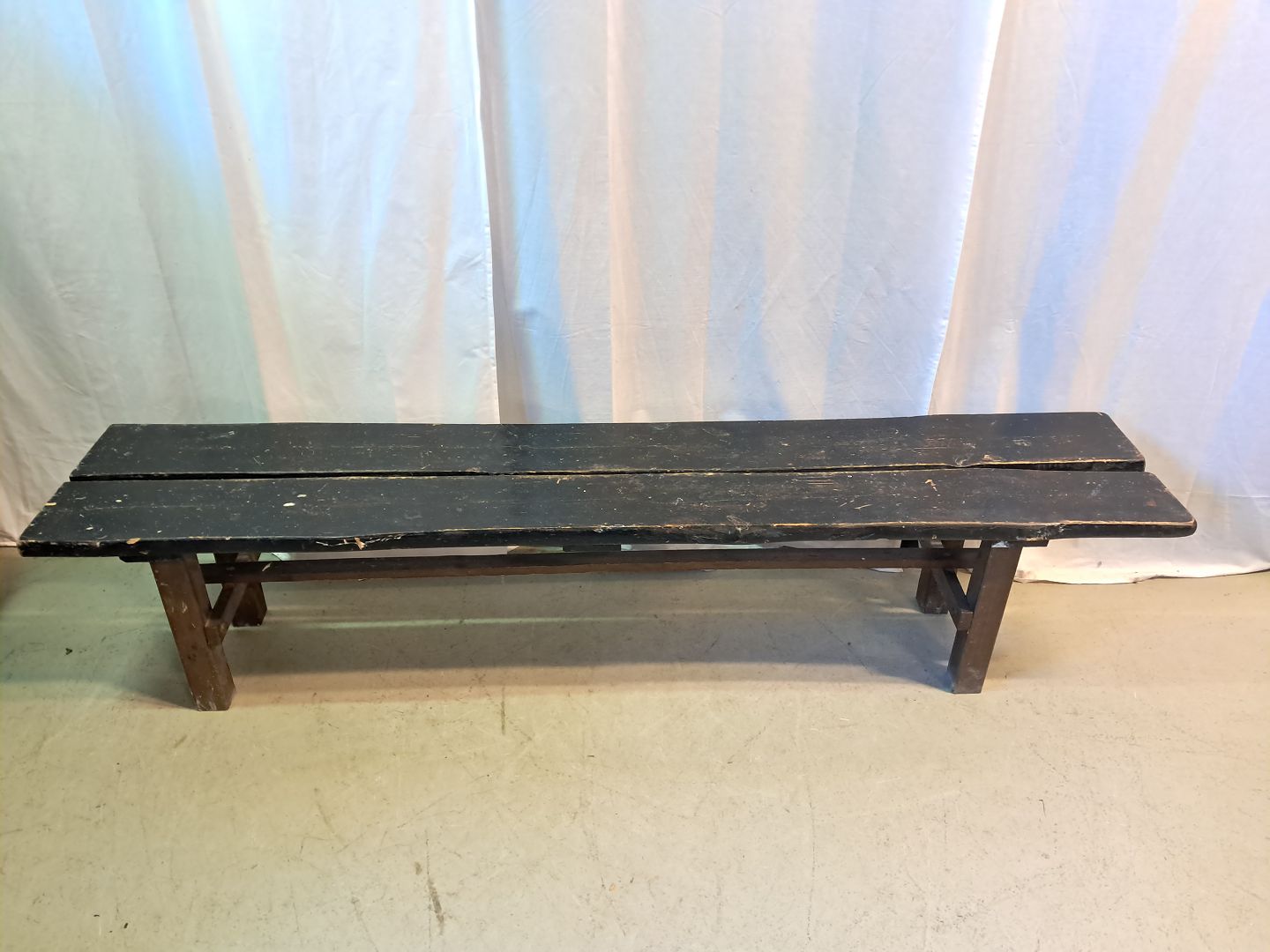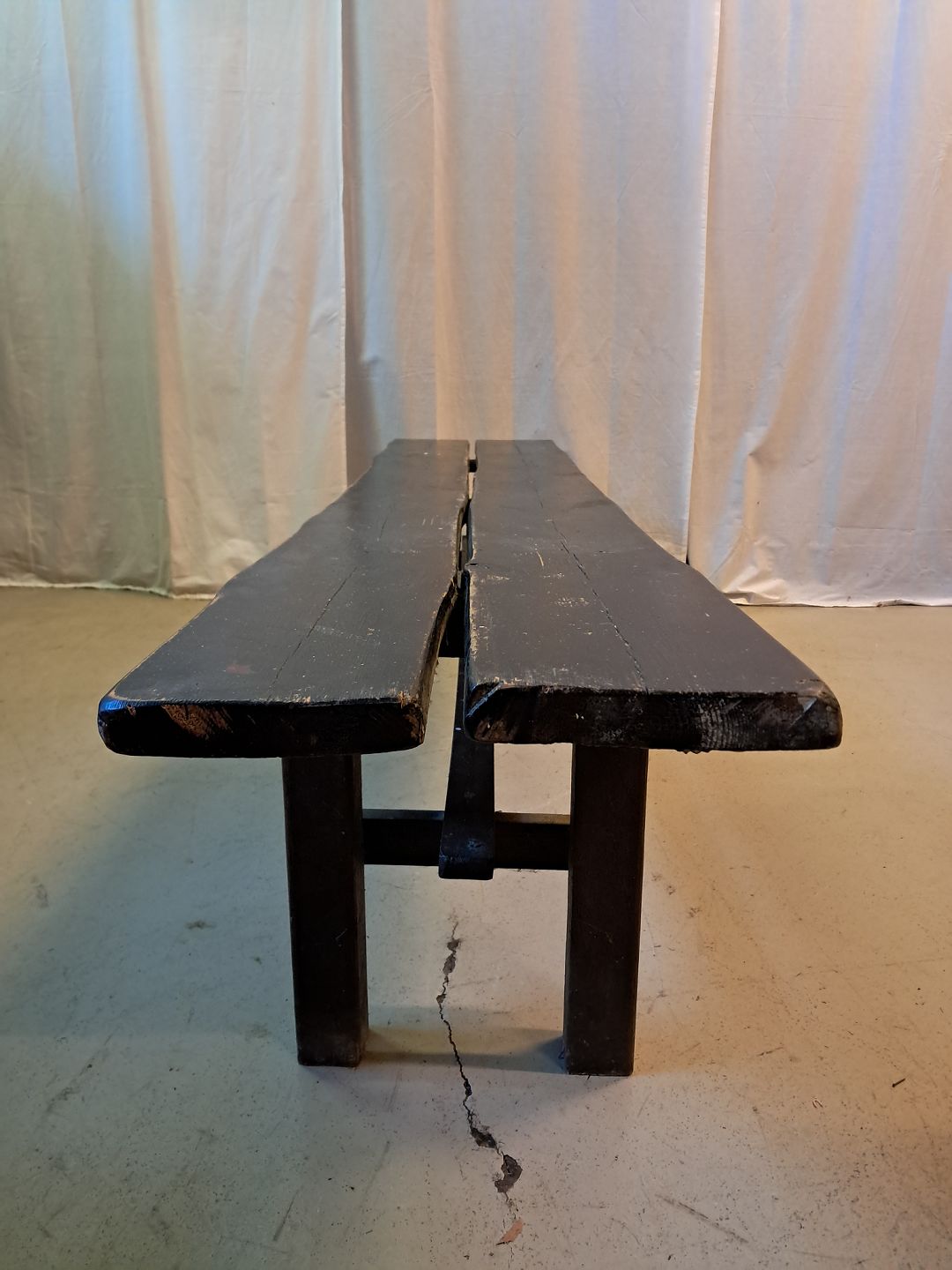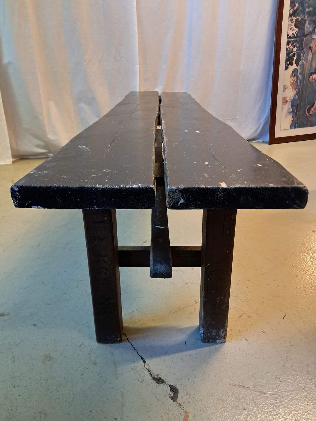 Malet bænk i massivt Fyrre og egetræ, fra 1950erne.Den har brugsspor.