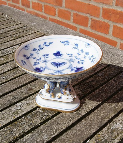 Sommerfugl med guldkant eller Kipling Bing & Grøndahl B&G porcelæn kaffestel.Elegant opsats til konfekt eller småkager nr. 451 i 2. sort. Skålen er båret af 3 delfiner, og den er i pæn, brugt stand.