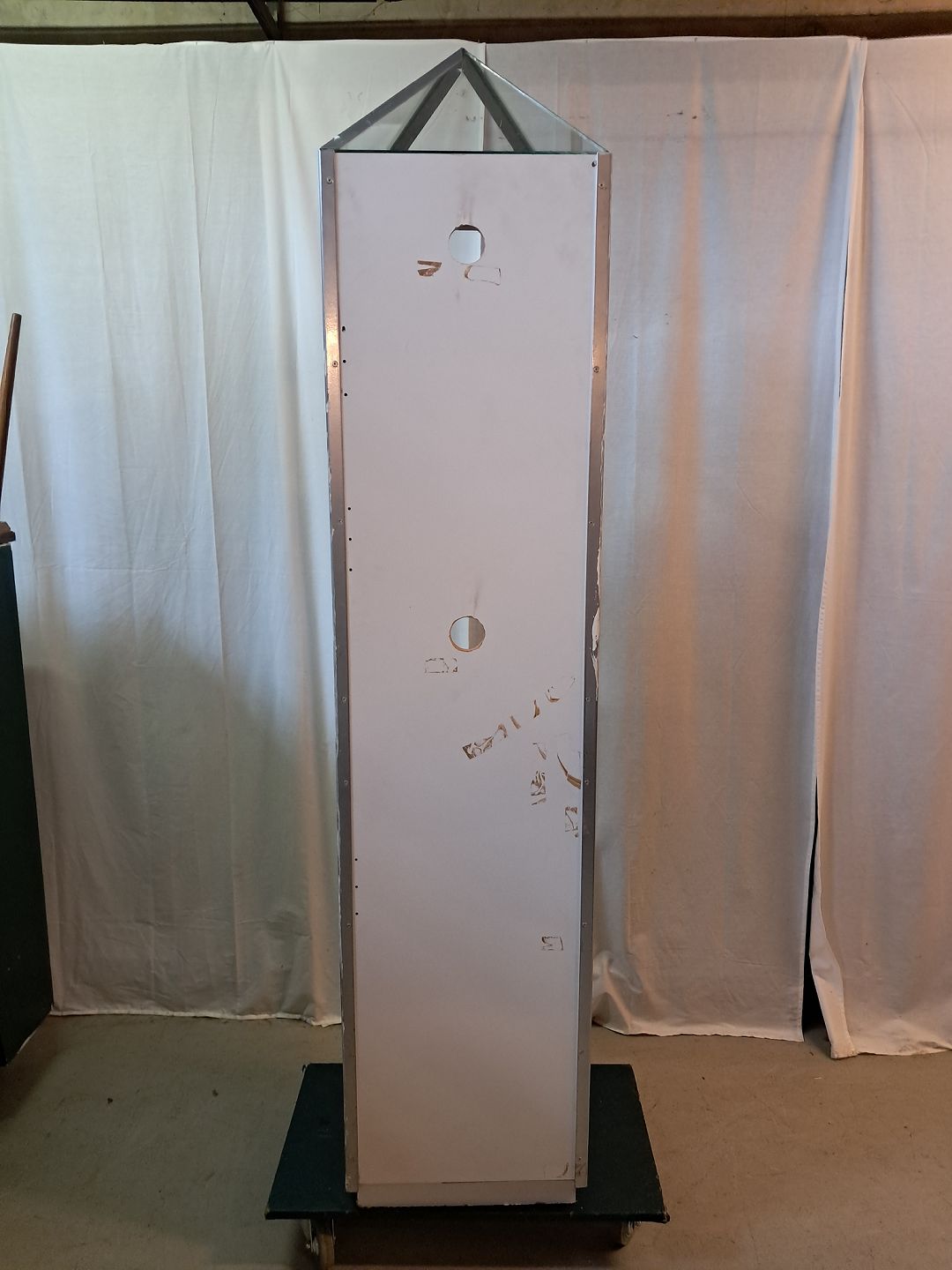 Skab med glasoverdel, fra 1990erne.Det har brugsspor, mangler en metalliste på toppen og der medfølger ikke nøgle.