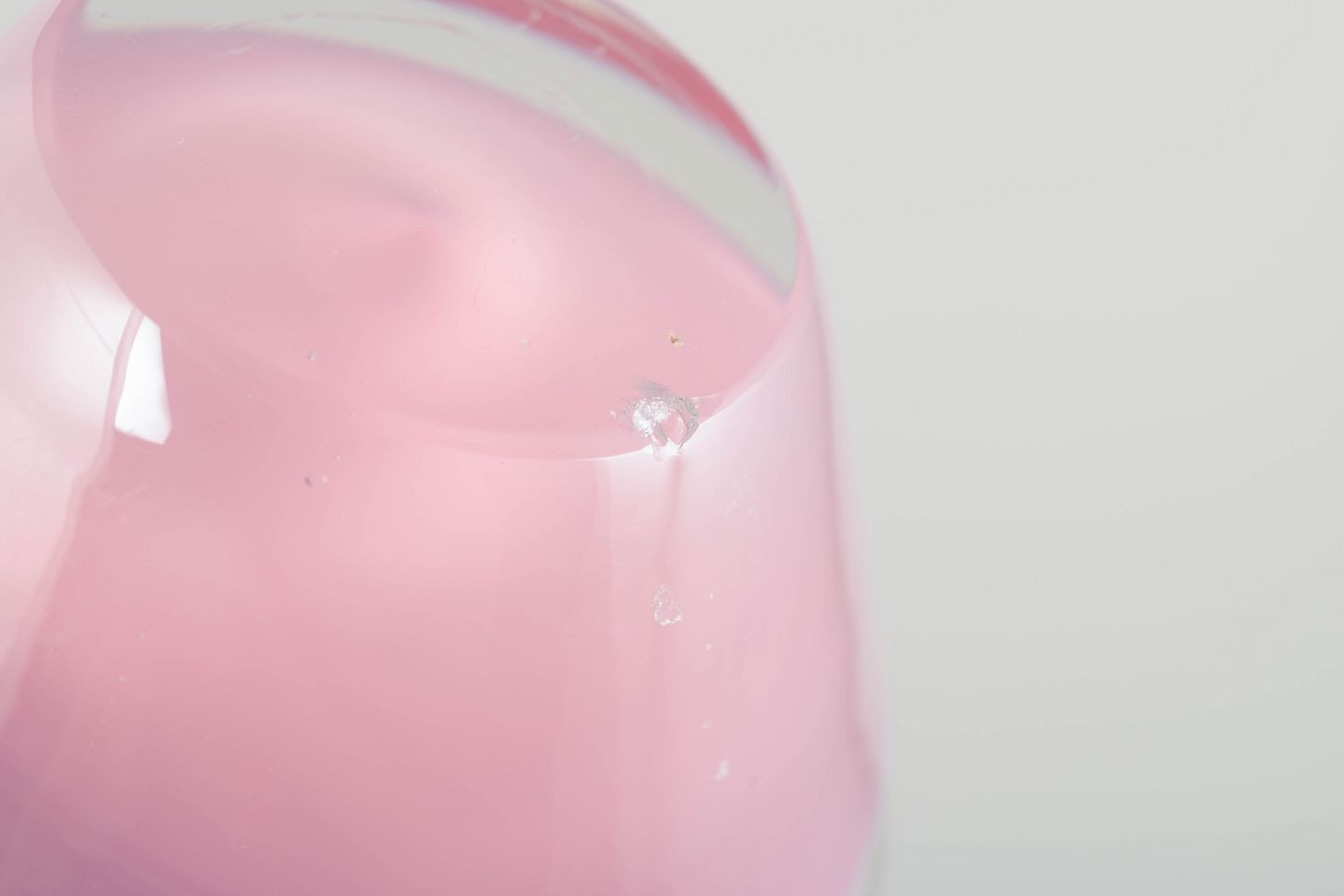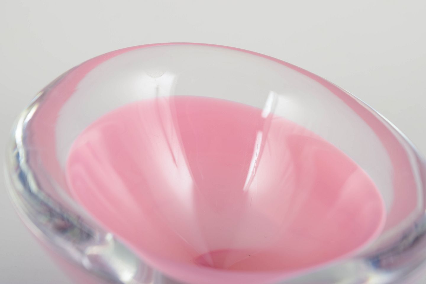 Murano kunstskål, 1960’erne.Lille, organisk formet skål i mundblæst glas med klar kant og lagdelt farvespil i rosa og hvidt, typisk for Murano glas fra perioden.