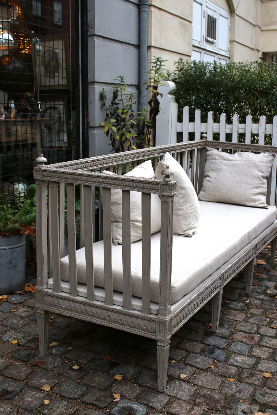 Gustaviansk svensk 1800 tals sofabænk i original grå farve