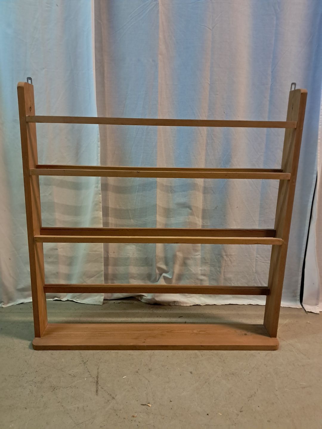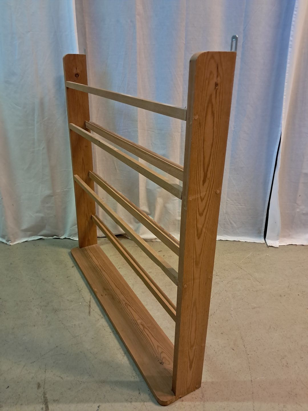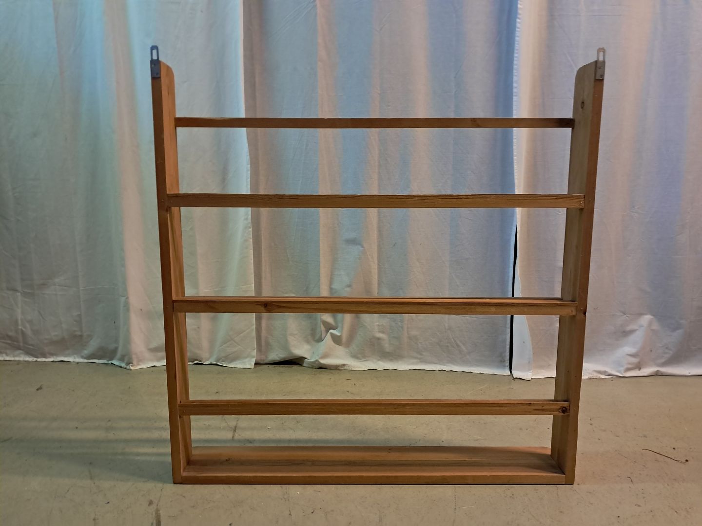 Talerkenrække i massivt fyrretræ, fra 1980erne.Den har brugsspor.