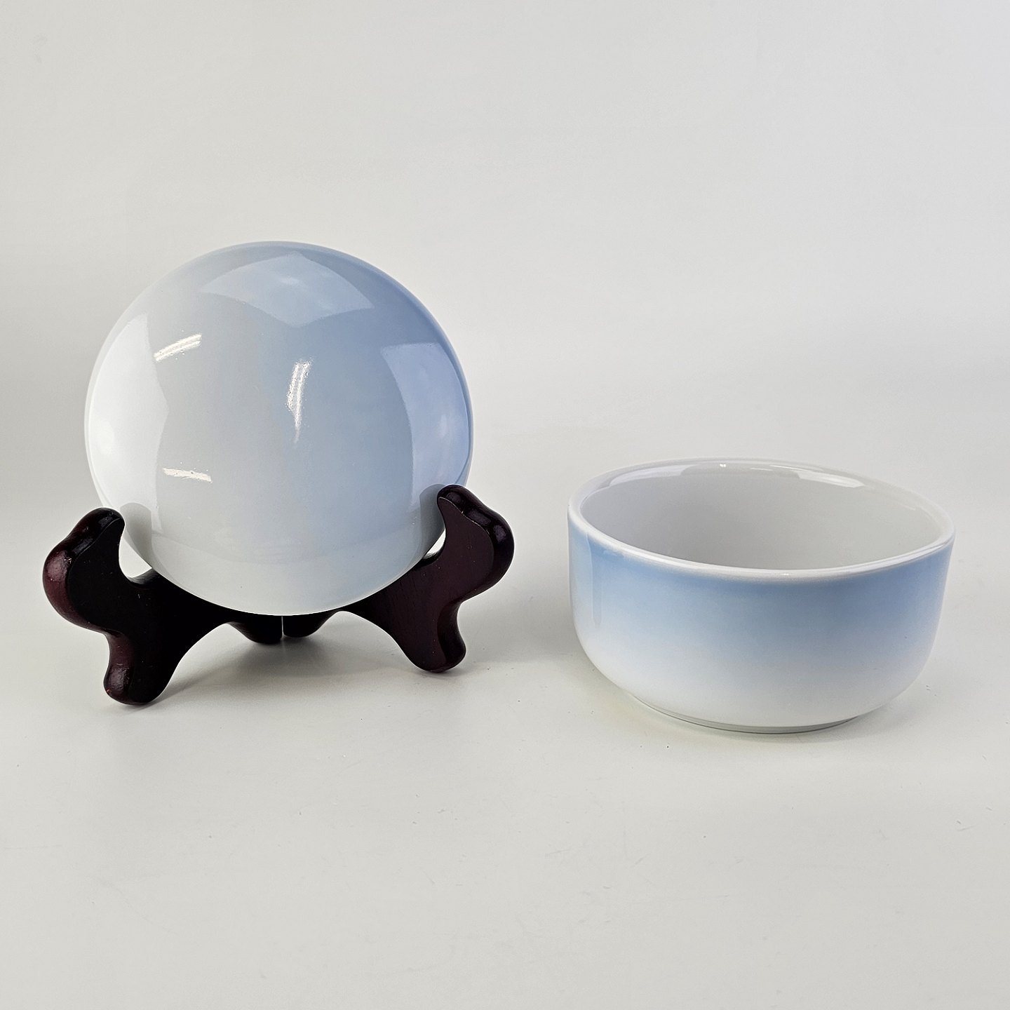 Blå tone er fremstillet af hotelporcelæn, glaseret hvidt med blå nuancer og dekoreret med skel lignende mønster.