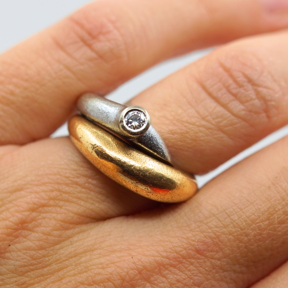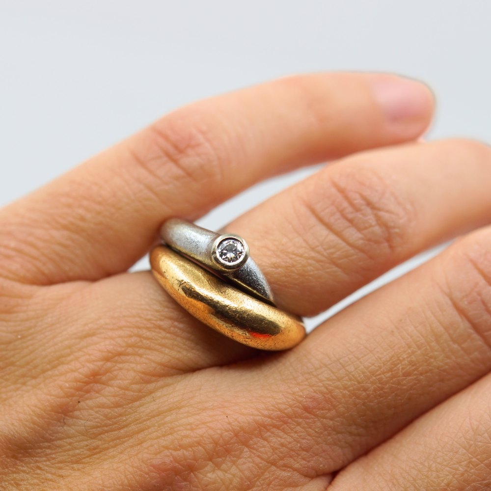 Ole Lynggaard; "Fidelity" ring i 14 kt. guld og hvidguld, prydet med brillantsleben diamant, 0.13 ct. samt hjerte i rød emalje indvendigt.Ring str. 52.