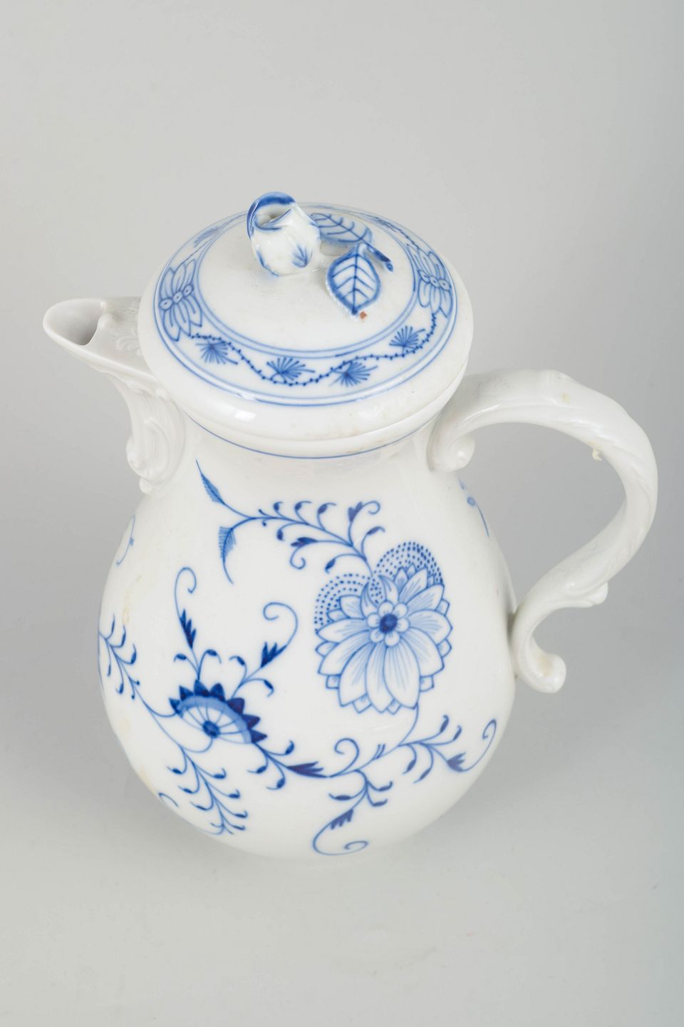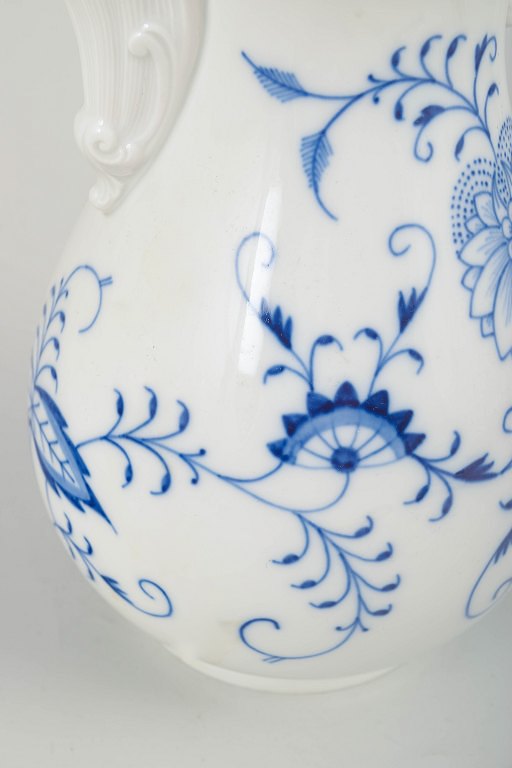 Meissens Zwiebelmuster har været et af Europas mest ikoniske porcelænsmønstre siden 1730’erne. Omkring år 1900 blev mange af de klassiske former videreudviklet, og kaffekander fra denne periode er eftertragtede for deres håndmalede detaljer, kvalitet og tidstypiske elegance.