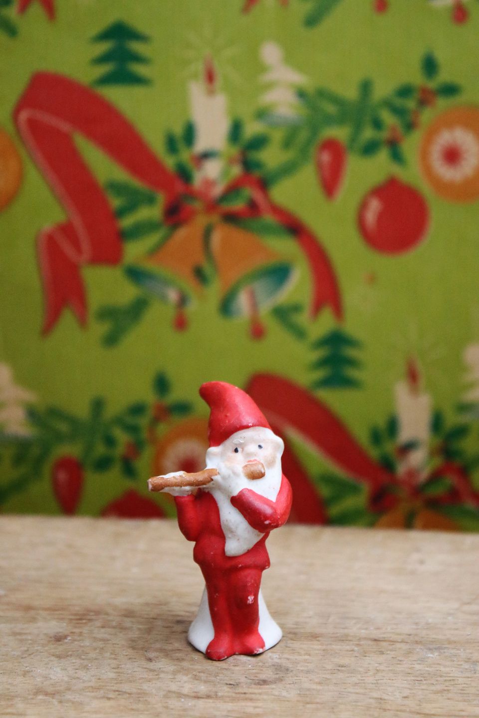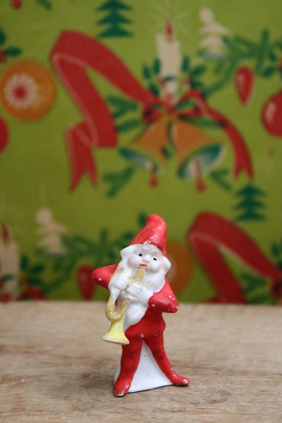 Små gamle biskuit nisser med instrumenter. H: 5,5cm.1) med tromme 2) med trompet. 3) med fløjte.