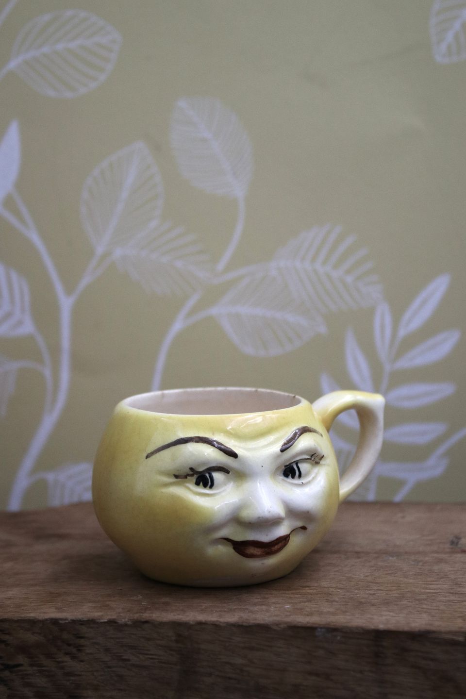 Gamle børnekopper i fajance med sjove ansigter.H: 5,5cm. Dia.: 7,5cm.