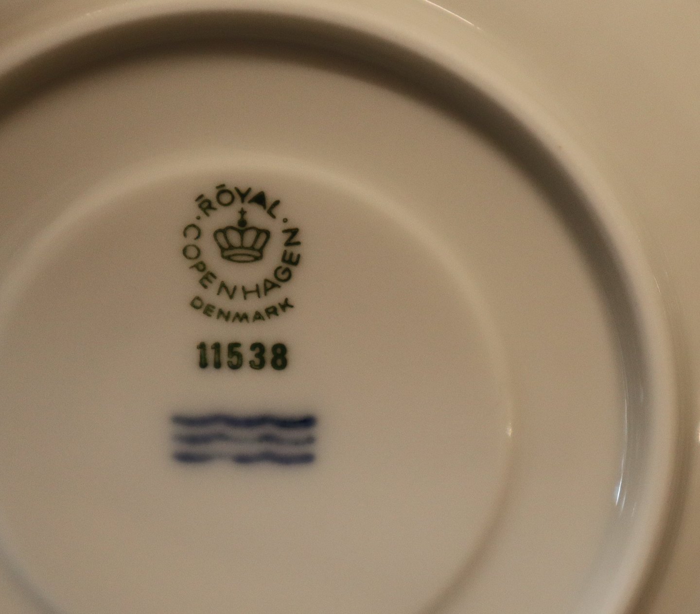 10 stk på lager11538 Kaffekop 6.3 x 7.5 cm og underkop 13.5 cm Kgl. spisestel fra Royal Copenhagen Hvid Vifte. Designet af Arnold Krog 1909. I hel og fin stand (White Fan)