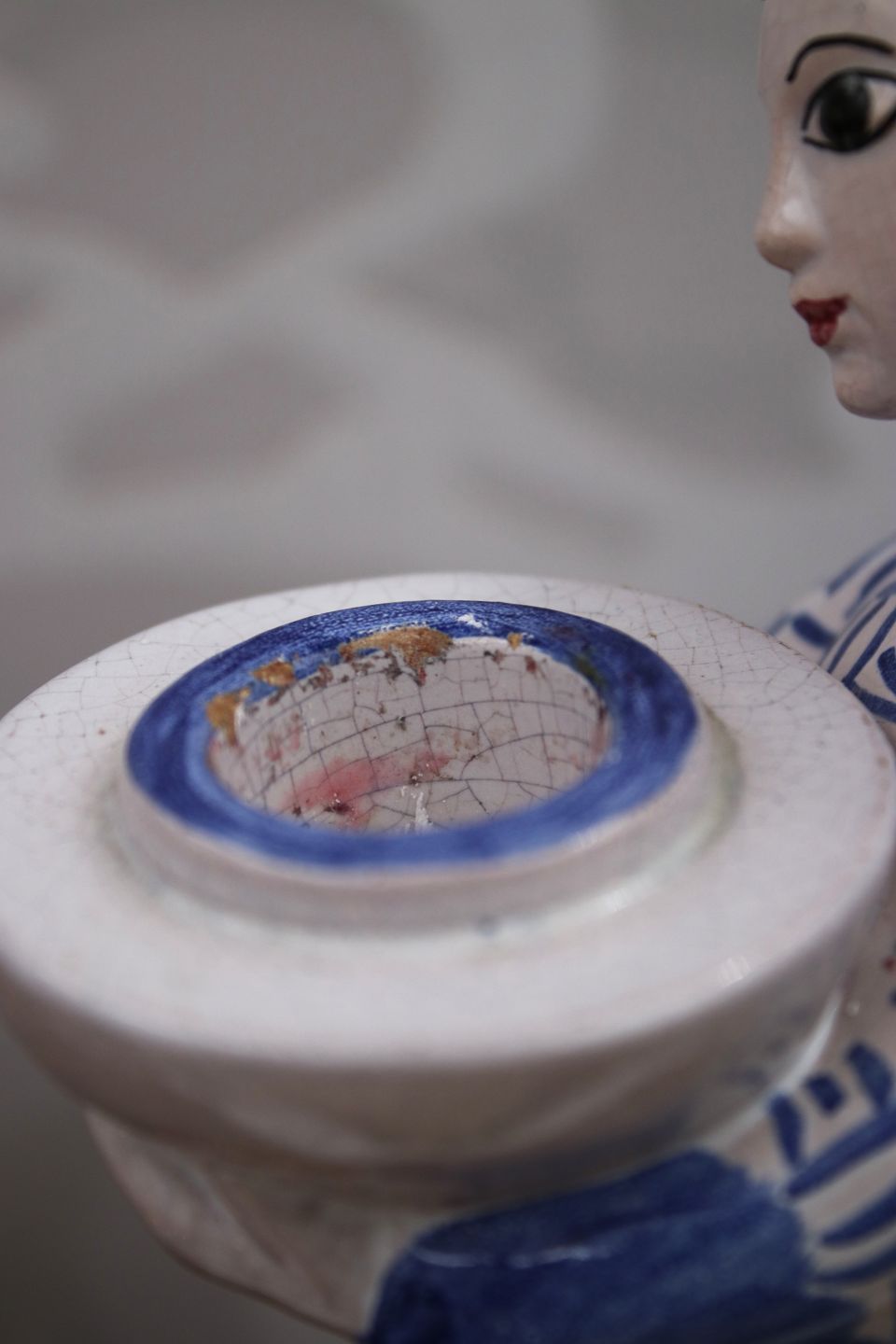 Der er et par meget små glasur afslag på indersiden af selve lysholderen, se extra billede ! , kan ikke ses udefra.