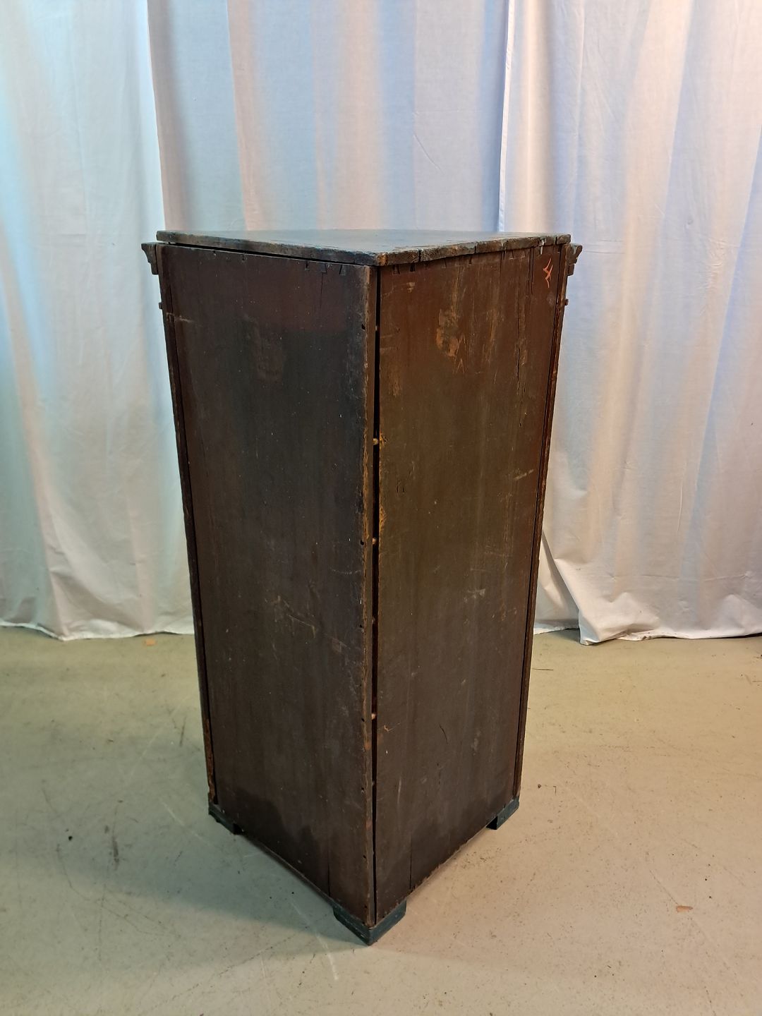 Malet hjørneskab i massivt fyrretræ, fra 1900erne.Det har brugsspor og små defekter.