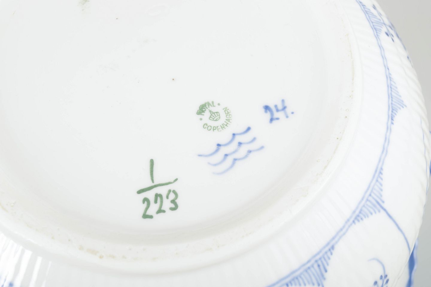 Royal Copenhagen musselmalet riflet, model 1/223.Stor suppeterrin, 1920’erne.