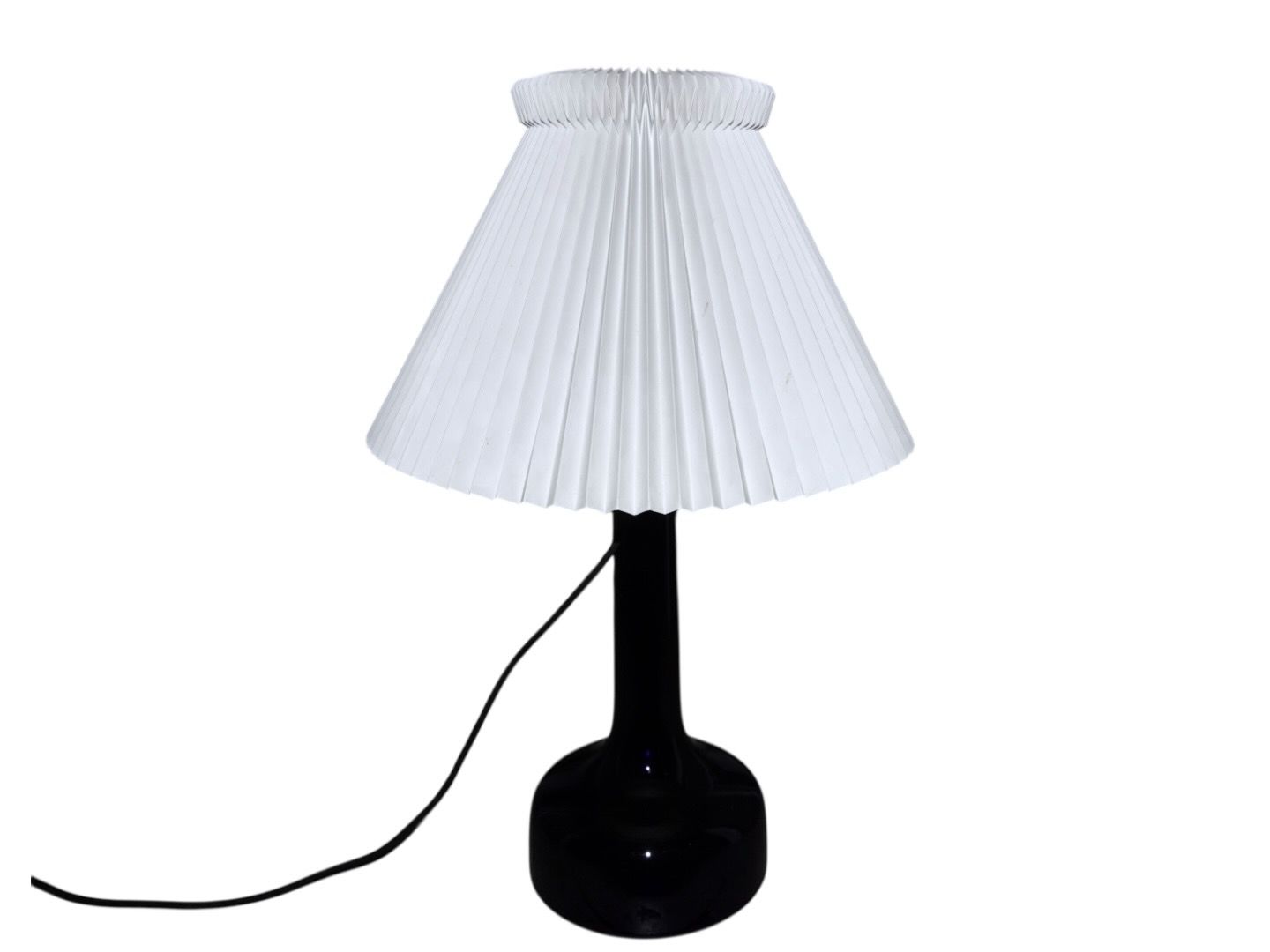 Holmegaard Le Klint i kunstglas.Stor mørkeblå bordlampe med tilhørende Le Klint skærm.