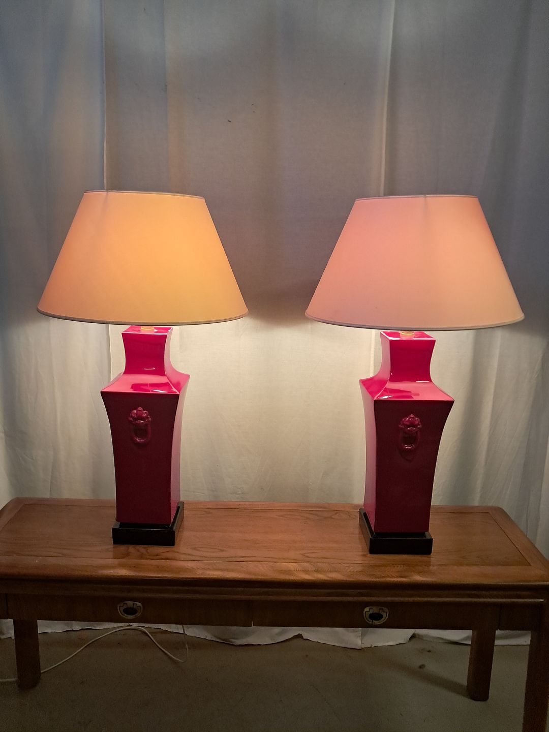 2 Bordlamper i pocelæn med skærme, fra 2000erne.De har brugsspor.