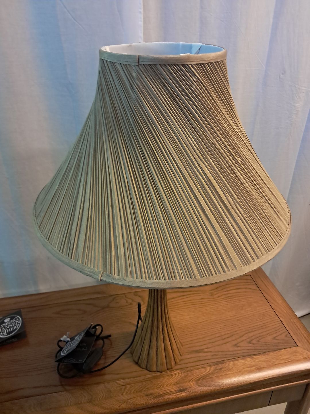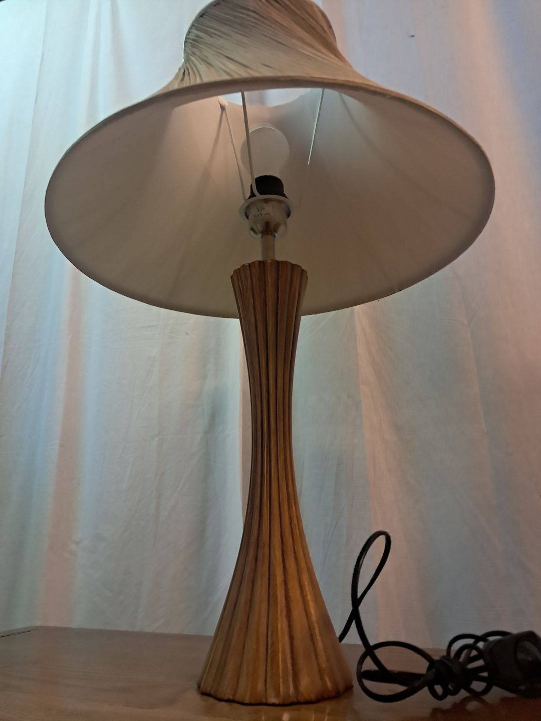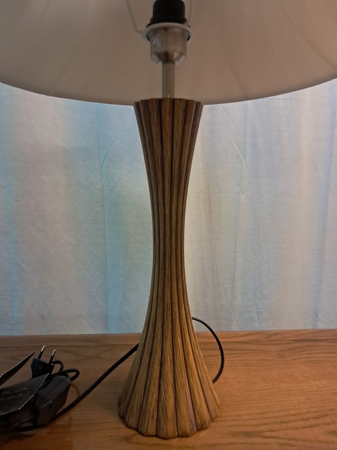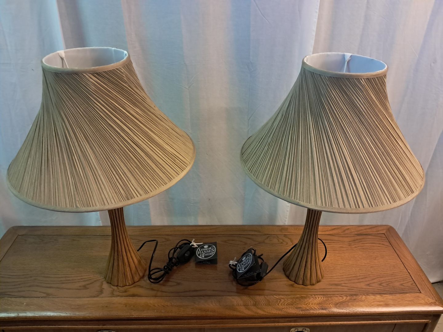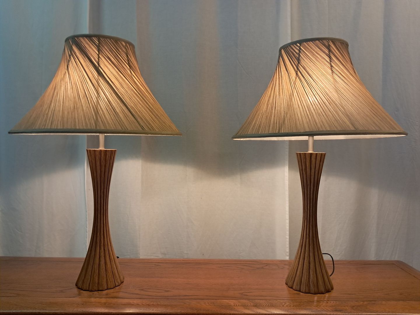 2 Lysberg Hansen og Therp bordlamper i pocelæn med skærme, fra 0erne.De har brugsspor.