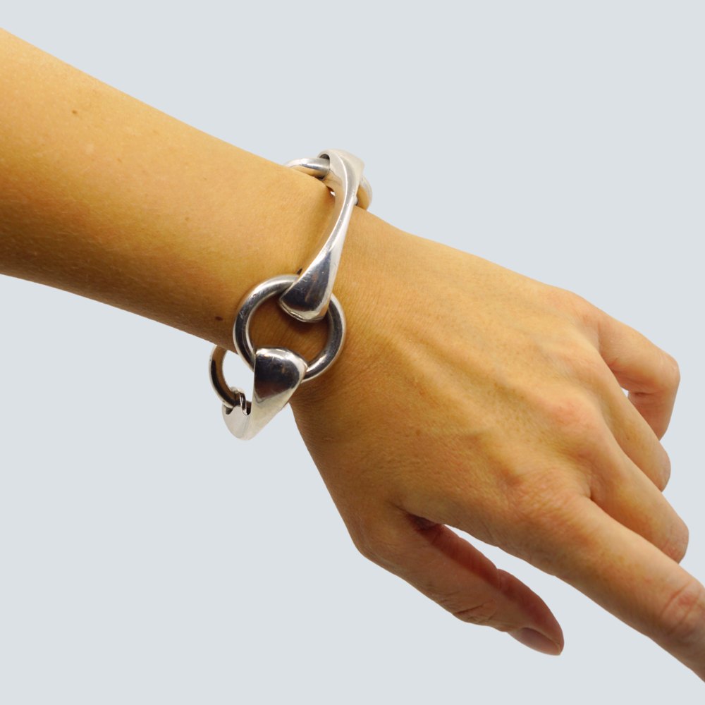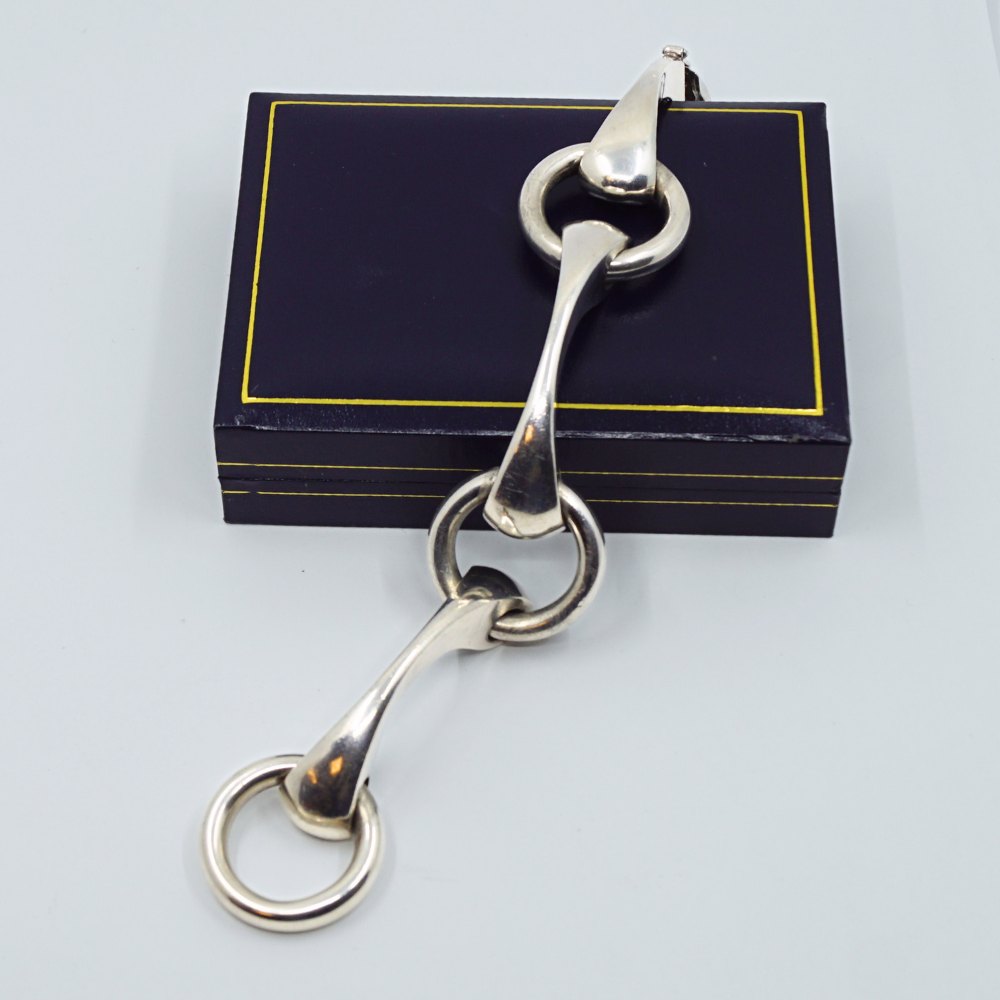 Kraftigt dansk sølvsmykke.Leddelt bidsel armbånd i sølv.