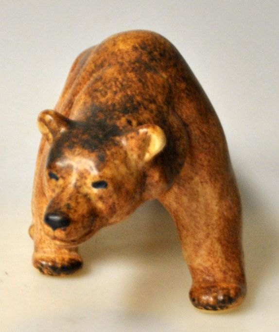 Hald, Peder (1892 - 1987) Danmark: En bjørn. 5975. Brunglaseret stentøj. Udført for Micahel Andersen & Søn, Bornholm. Signeret: HALD. L.: 23 cm. H.: 13 cm.