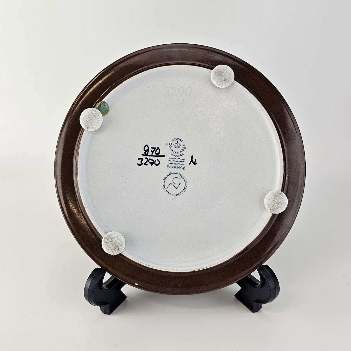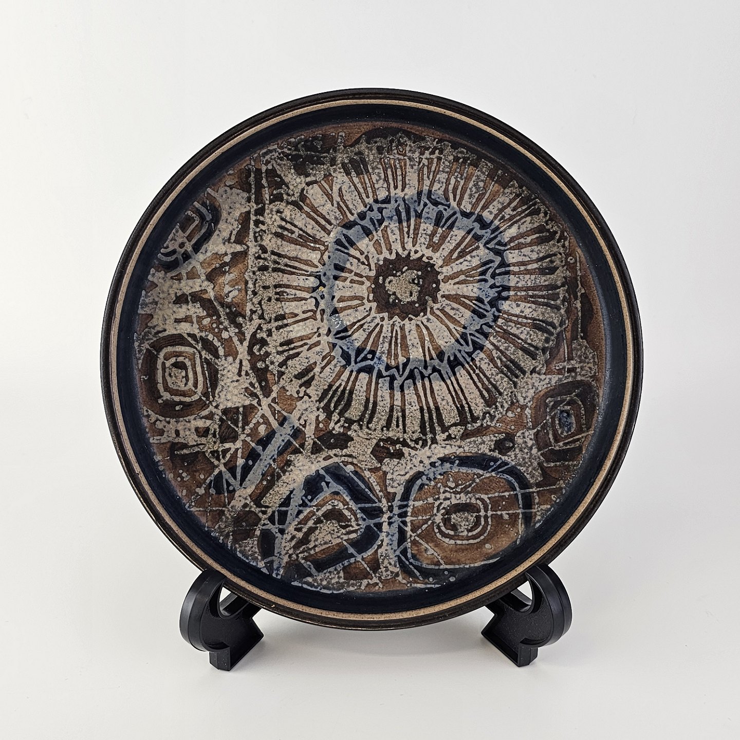 Flad rund skål i fajance fra Baca serien med mønster i brune nuancerNr 870/3290