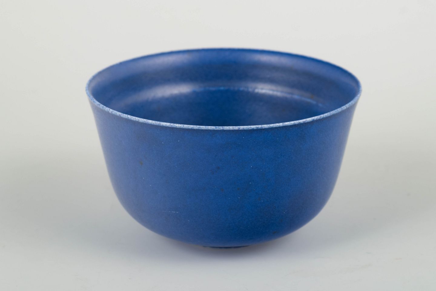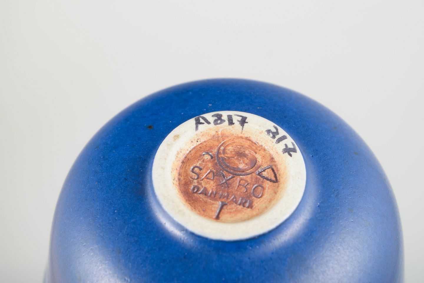 En elegant, Saxbo skål i karakteristisk dybblå reduktionsglasur. Formen er ren og stram, typisk for værkstedets modernistiske udtryk og høje tekniske niveau.